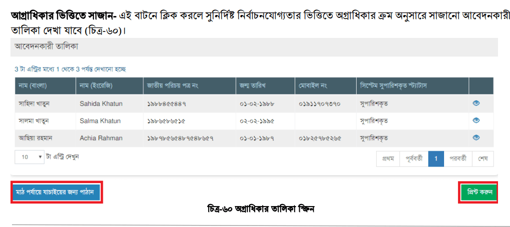 হ্যাঁ। অবশ্যই আপনার আবেদনের অবস্থা ইউপি বা পৌরসভা হতে জানতে পারবেন। আপনার জাতীয় পরিচয়পত্র ও মোবাইল নম্বর দিয়ে সার্চ করে সিস্টেমে আবেদনের স্ট্যাটাস চেক করা যাবে। ইউপি উদ্যোক্তা বা সমাজসেবা অধিদপ্তরের অনুমোদিত ব্যক্তি বা এজেন্টের মাধ্যমে আপনি আপনার অনলাইন আবেদন বাতিল বা গ্রহণযোগ্য বা সুপারিশকৃত বা অনুমোদন হয়েছে কিনা তা চেক করতে পারবেন। নিচের চিত্রের মত দেখাবে। অগ্রাধিকার এবং সুপারিশ প্রক্রিয়া (উদ্যোক্তা) পিডিএফ ডাউনলোড