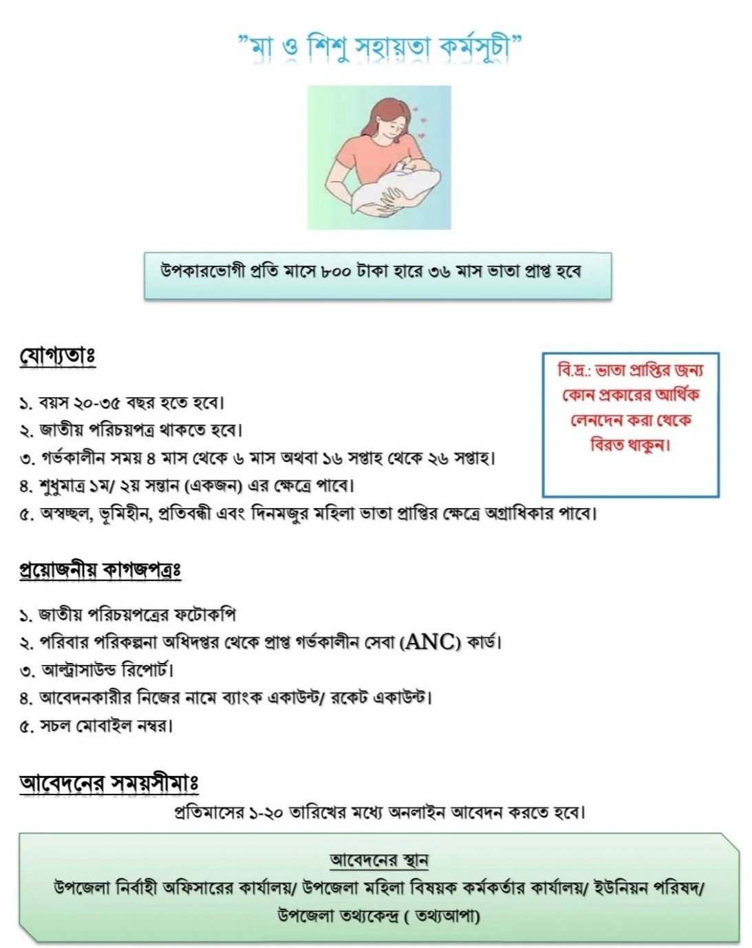 মাতৃত্বকালীন ভাতা ২০২৫-২০২৬ । মাতৃত্বকালীন ভাতা অনলাইন আবেদন পদ্ধতি দেখুন