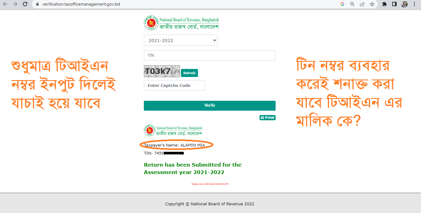 TIN Number Check bd । অনলাইনেই ব্যক্তির TIN নম্বর যাচাই করা যায় কি?