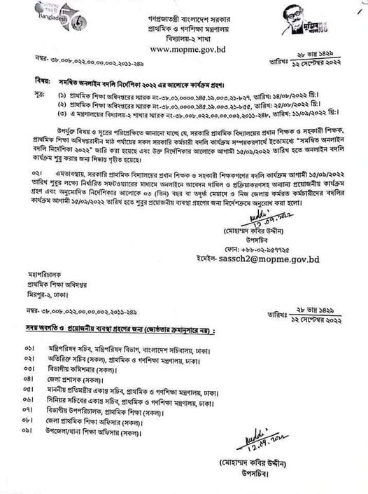 প্রাথমিক শিক্ষক বদলি নীতিমালা ২০২২ । সমন্বিত অনলাইন বদলি নির্দেশিকা (সংশোধিত)