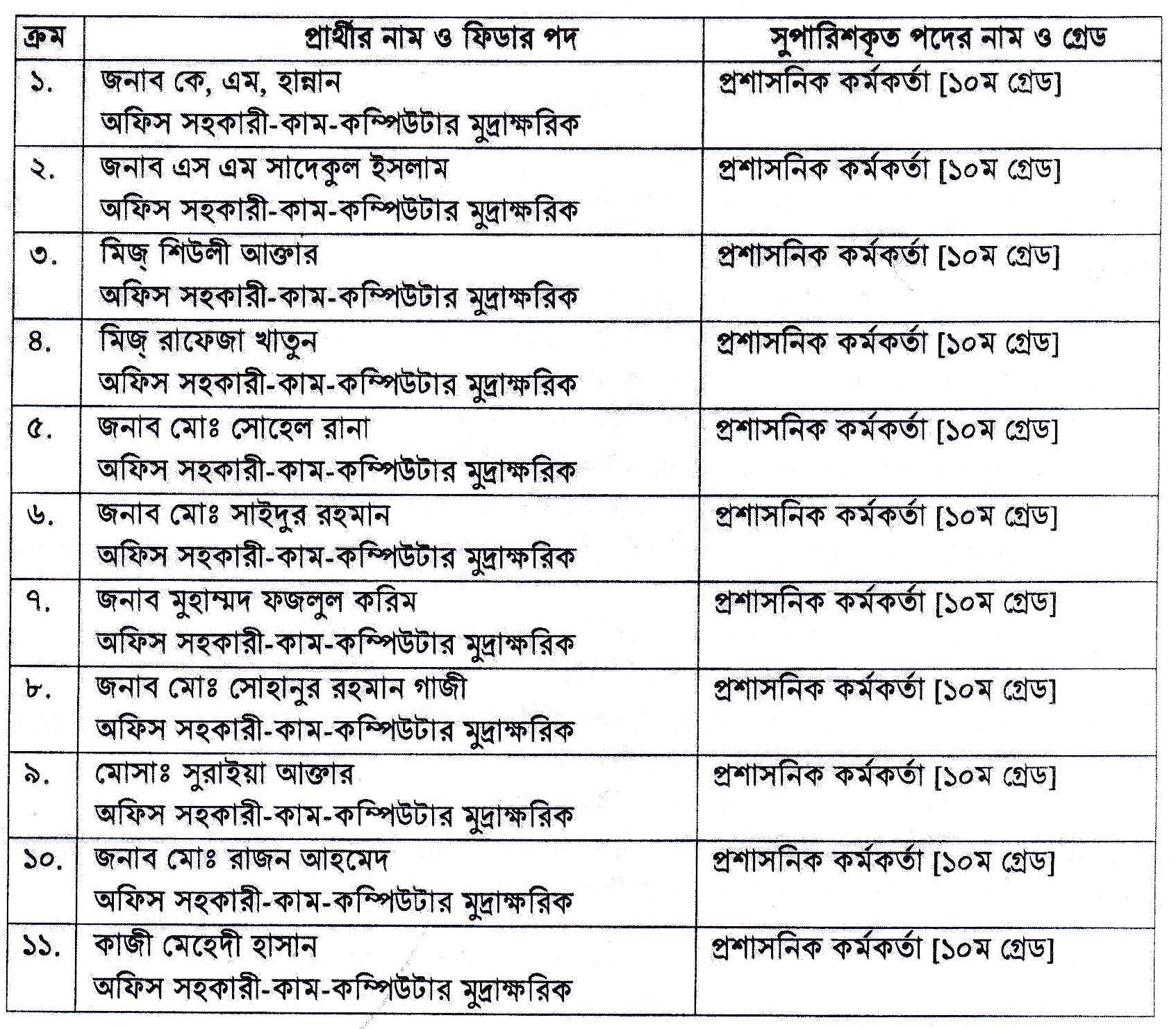 অফিস সহকারী হতে প্রশাসনিক কর্মকর্তা পদে পদোন্নতির প্রজ্ঞাপন: ডাউনলোড