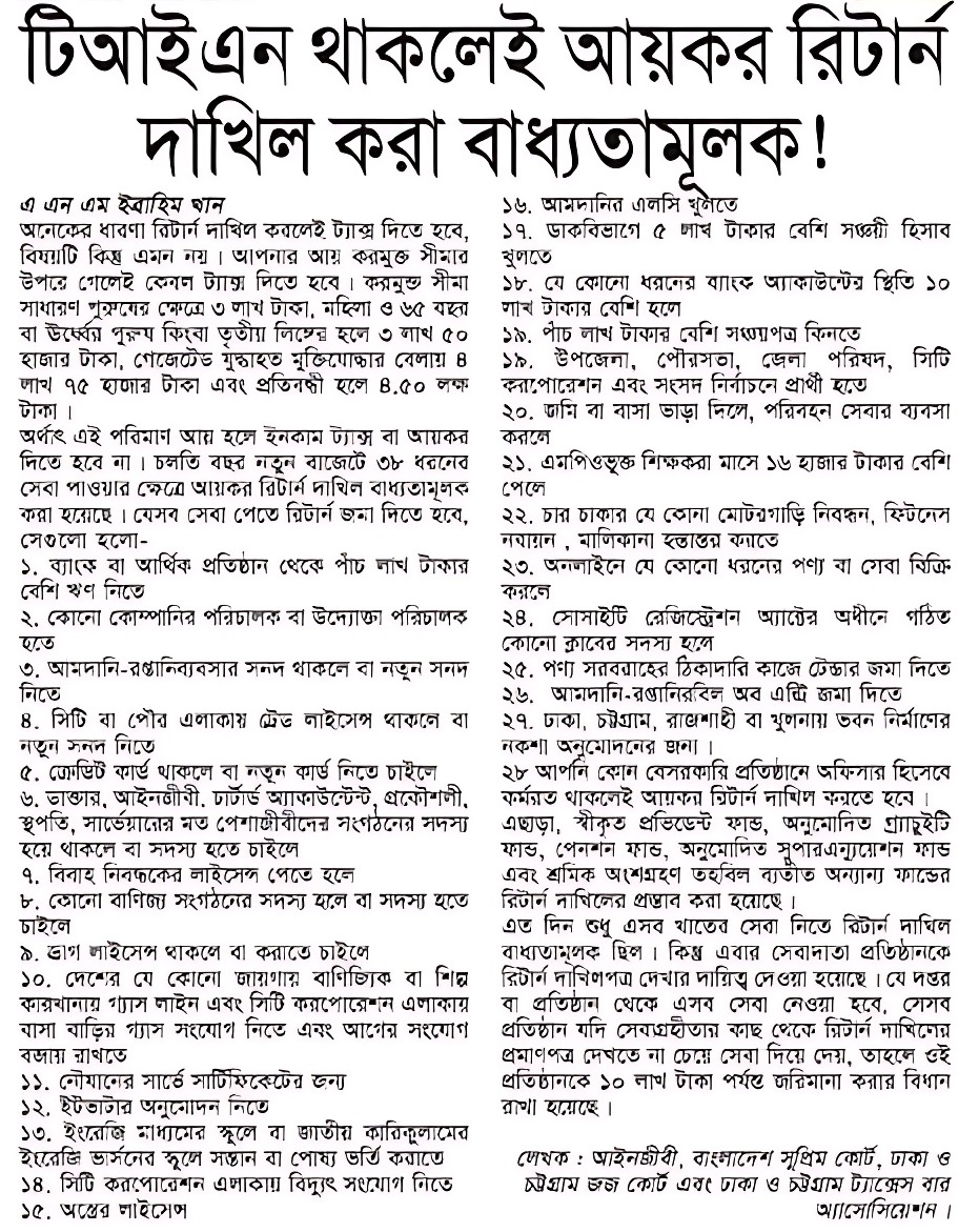 Income Tax Submission । আয়কর রিটার্ণ কারা দাখিল করবেন?