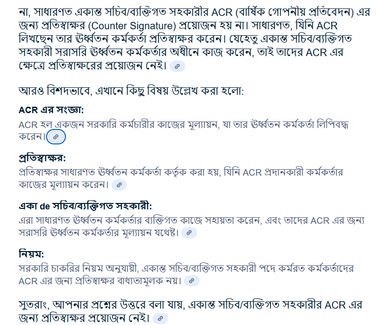 - একান্ত সচিব/ব্যক্তিগত সহকারী ACR এ প্রতিস্বাক্ষর লাগিবে না।