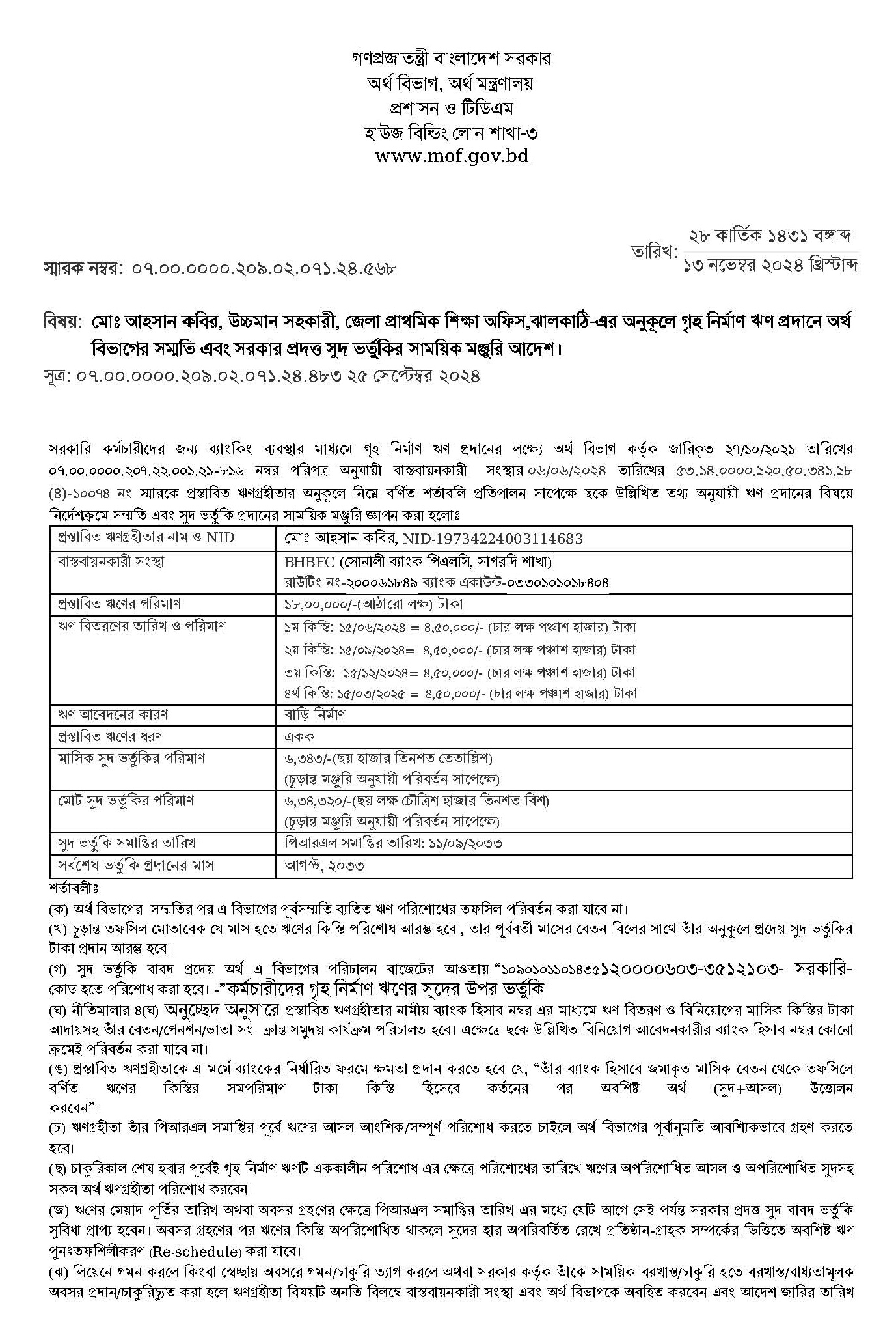 - সরকারি কর্মচারীদের গৃহনির্মাণ ঋণের জন্য নিম্নবর্ণিত নিয়মাবলী অনুসরণের জন্য বলা হয়েছে।