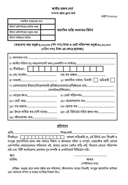 আয়কর রিটার্ন ফরম ২০২২-২০২৩ pdf । আয়কর রিটার্ন ফরম pdf । আয়কর রিটার্ন ২০২৩-২০২৪