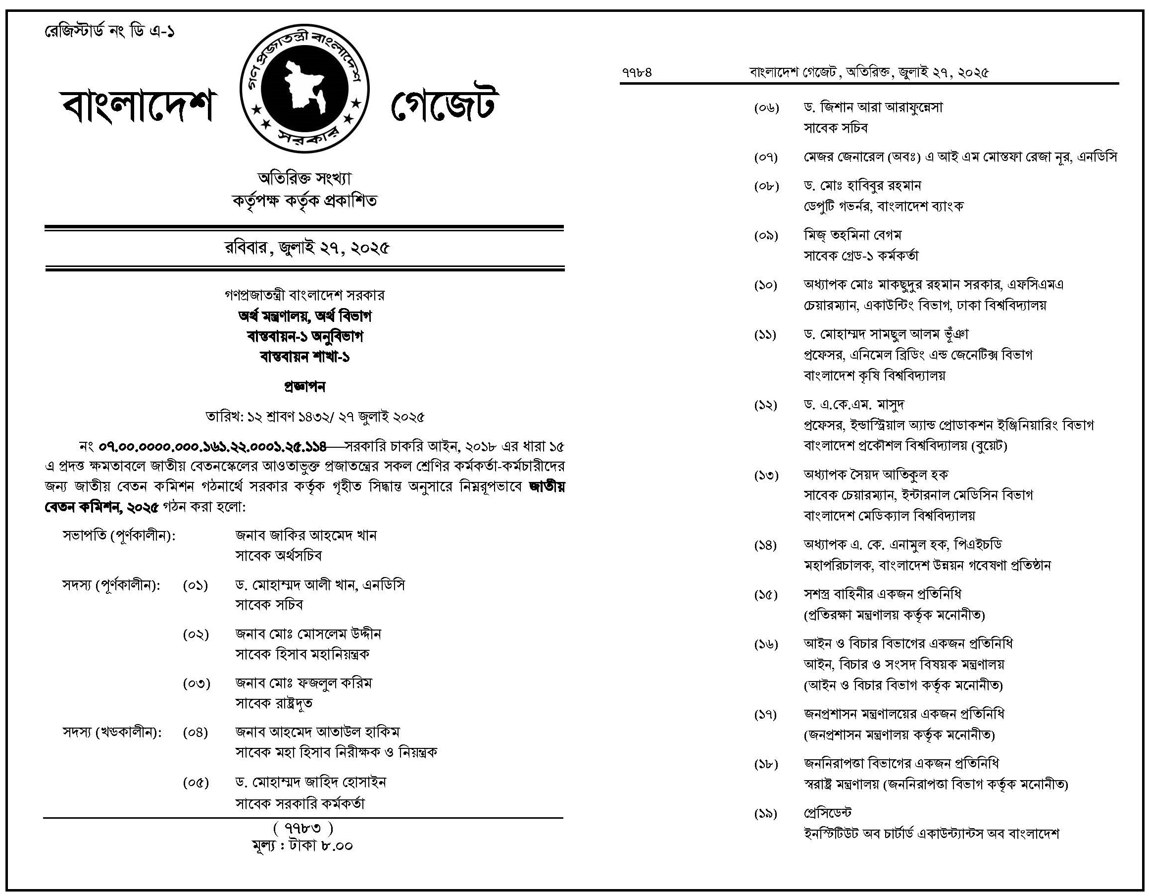 সরকারি কর্মকর্তা-কর্মচারীদের জন্য নতুন বেতন কাঠামো নির্ধারণে ‘জাতীয় বেতন কমিশন, ২০২৫’ গঠন করা হয়েছে।