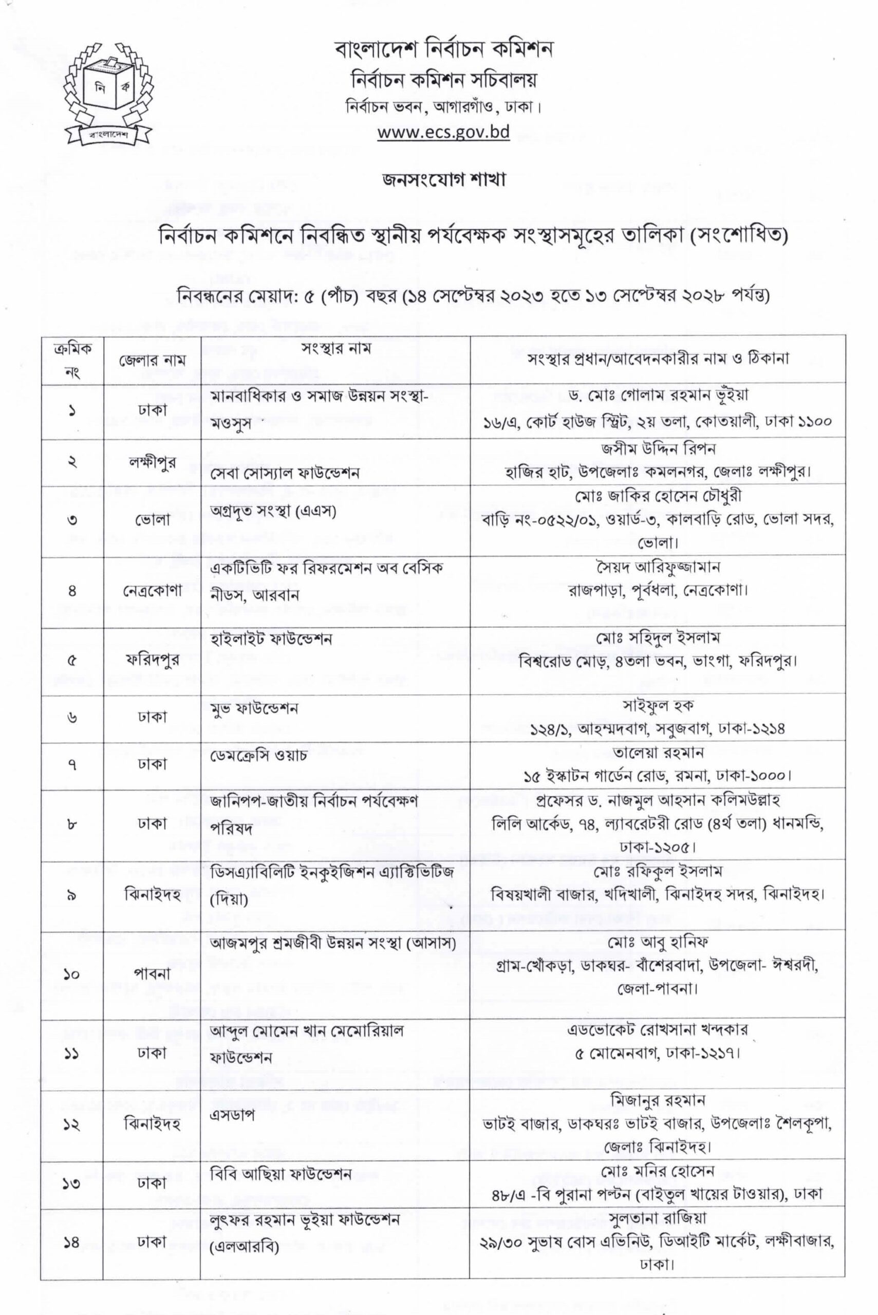নির্বাচন স্থানীয় পর্যবেক্ষক তালিকা ২০২৩ ডাউনলোড