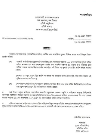 • বার্ষিক ইনক্রিমেন্ট: পেনশনার বা পারিবারিক পেনশনারগণ তাদের মাসিক নিট পেনশনের ওপর প্রতি বছর ৫% হারে ইনক্রিমেন্ট পাবেন।