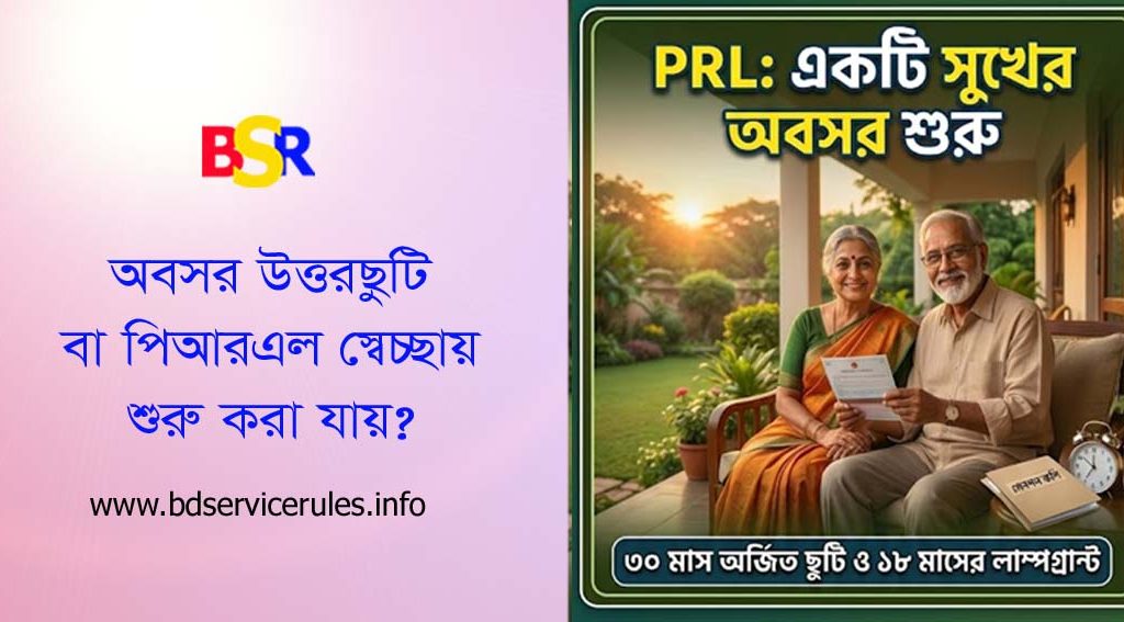 সরকারি বিধি অনুযায়ী, একজন সরকারি কর্মচারীর পিআরএল (PRL – Post Retirement Leave) বা অবসর প্রস্তুতিমূলক ছুটি সাধারণত তার অবসরে যাওয়ার তারিখ থেকে শুরু হয়।