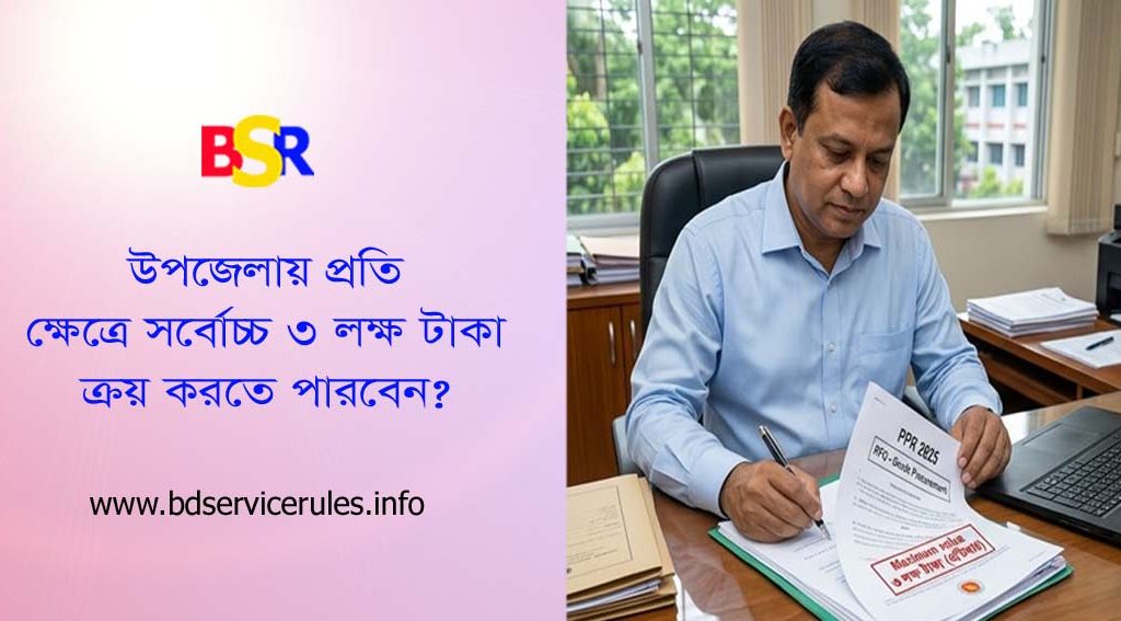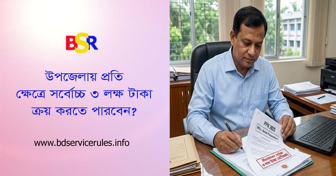 পিপিআর (PPR), ২০২৫-এর বিধি অনুযায়ী, উপজেলা পর্যায়ের দপ্তরের জন্য আরএফকিউ (RFQ) পদ্ধতির আর্থিক মূল্যসীমা নিচে দেওয়া হলো: