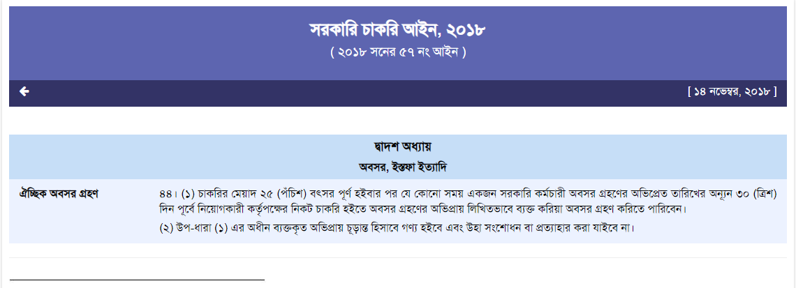 আরও বিস্তারিত জানতে সরকারি চাকরি আইন ২০১৮ দেখুন