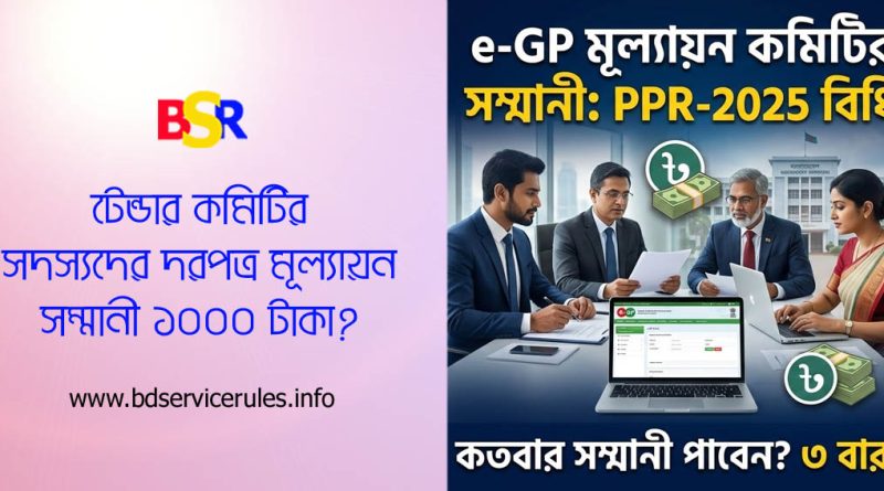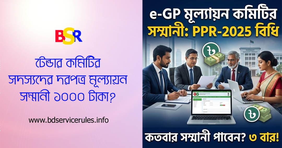 সরকার ঘোষিত নতুন পাবলিক প্রকিউরমেন্ট বিধিমালা, ২০২৫ (PPR-2025) অনুযায়ী দরপত্র মূল্যায়ন কমিটির (TEC) সদস্যদের সম্মানী…