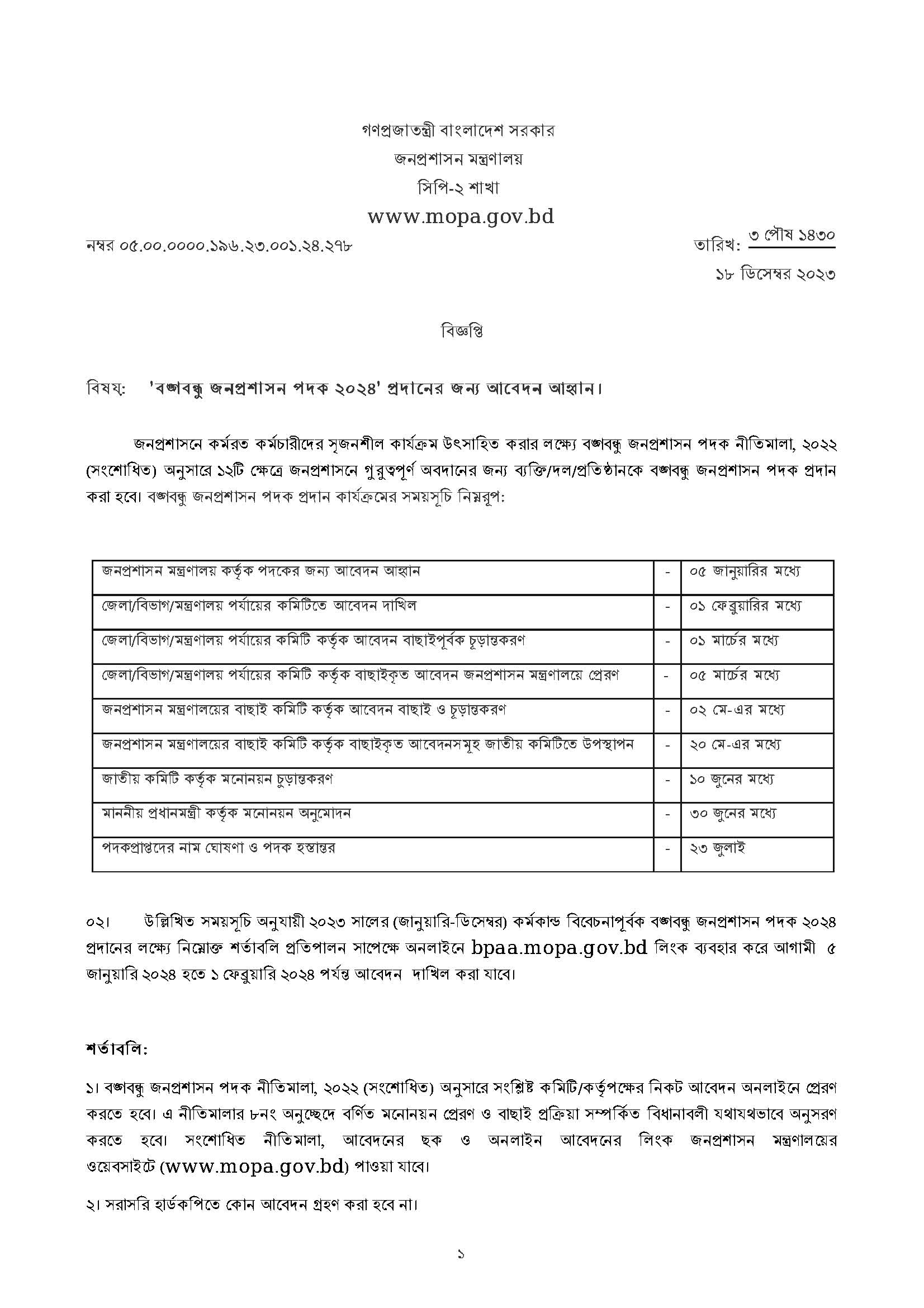 বঙ্গবন্ধু জনপ্রশাসন পদক ২০২৪ । বঙ্গবন্ধু জনপ্রশাসন পদকের জন্য অনলাইনে আবেদন দাখিল করা যাবে?