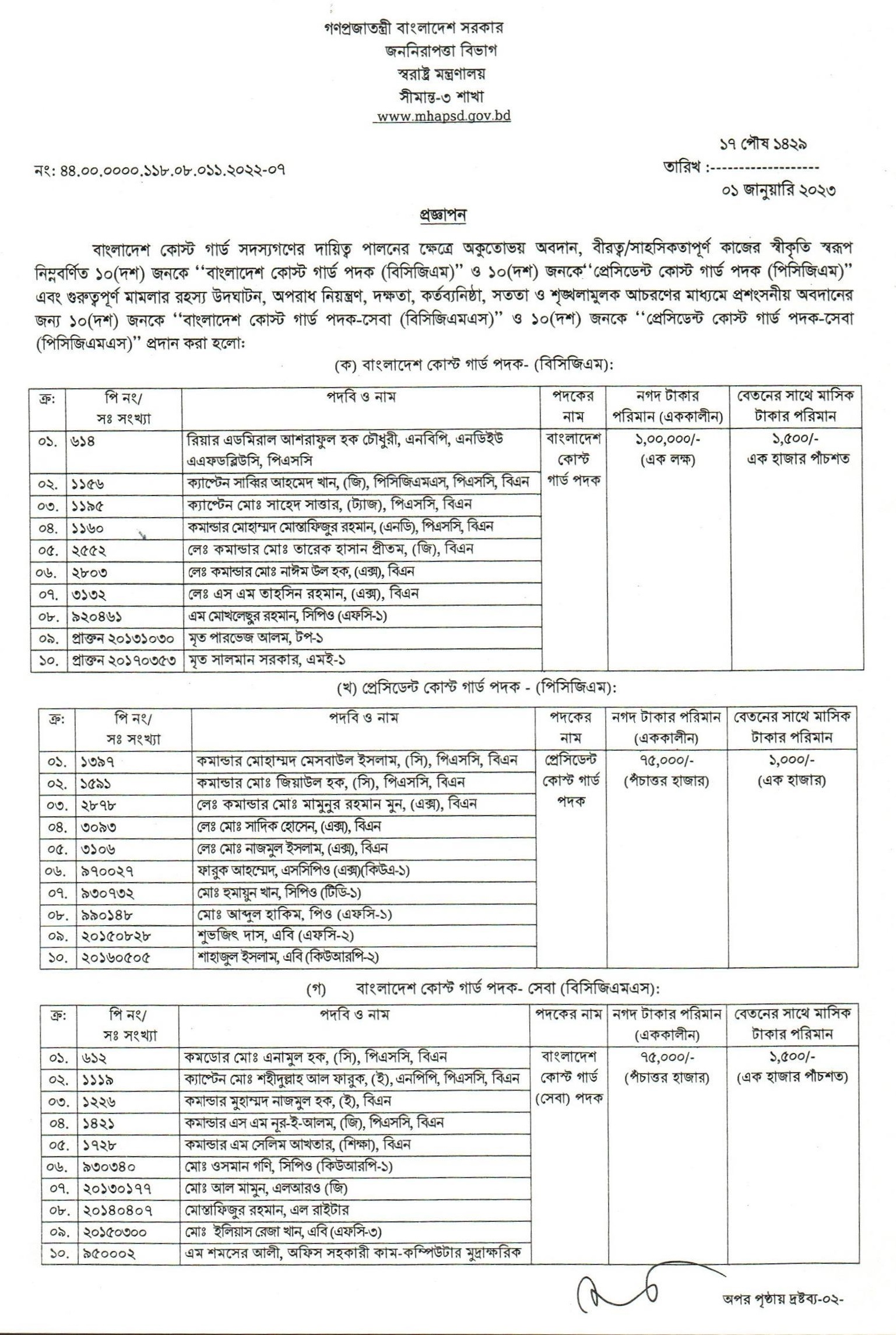বাংলাদেশ কোস্টগার্ড পদক ২০২৩ PDF Download