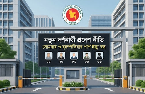 বাংলাদেশ সচিবালয়ে দর্শনার্থী প্রবেশে কড়াকড়ি: কর্মকর্তাভেদে পাসের সংখ্যা নির্ধারণ