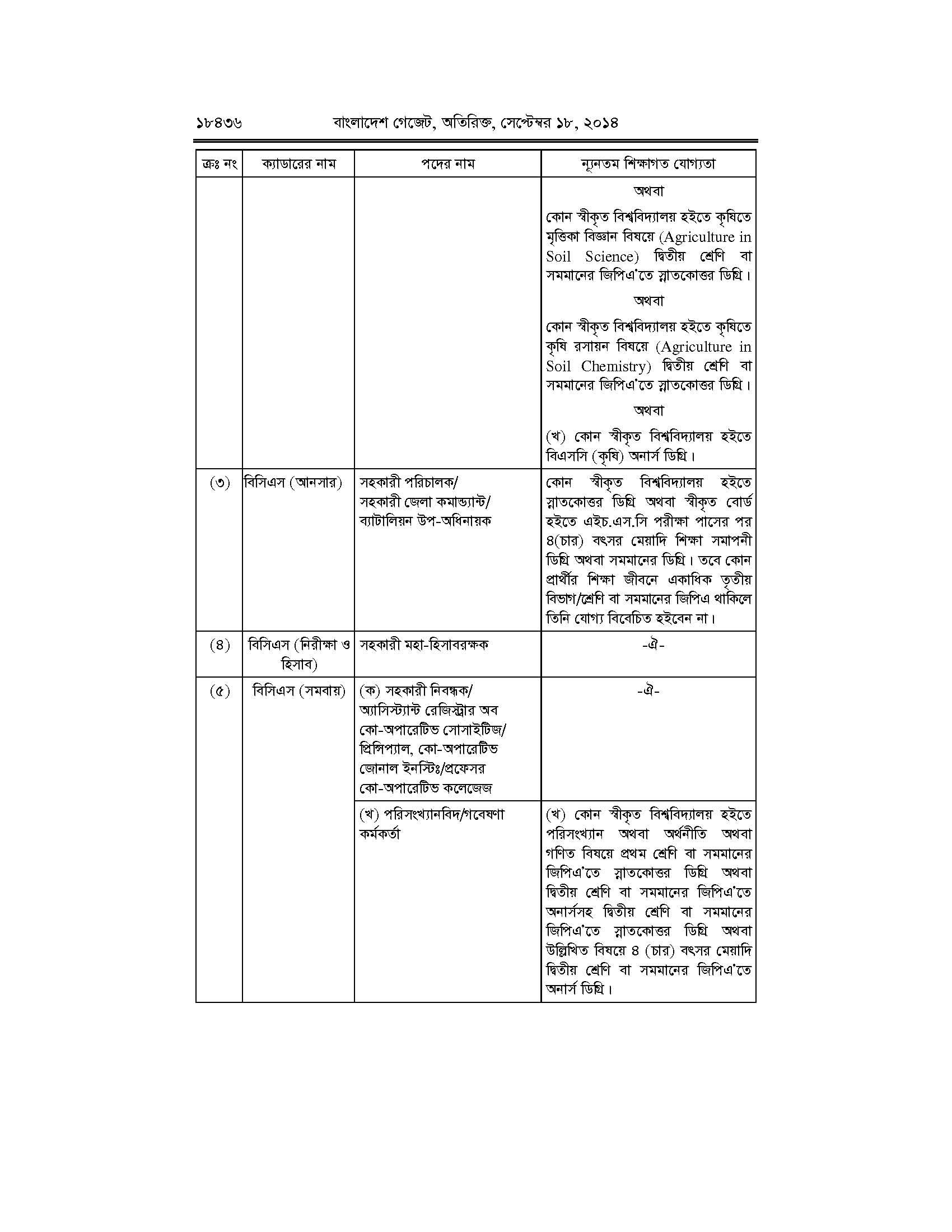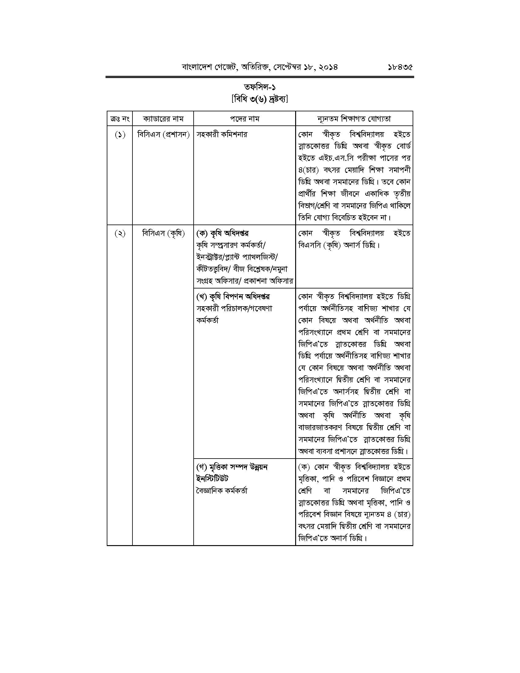 (ক) বাংলাদেশ সিভিল সার্ভিস (কৃষি);