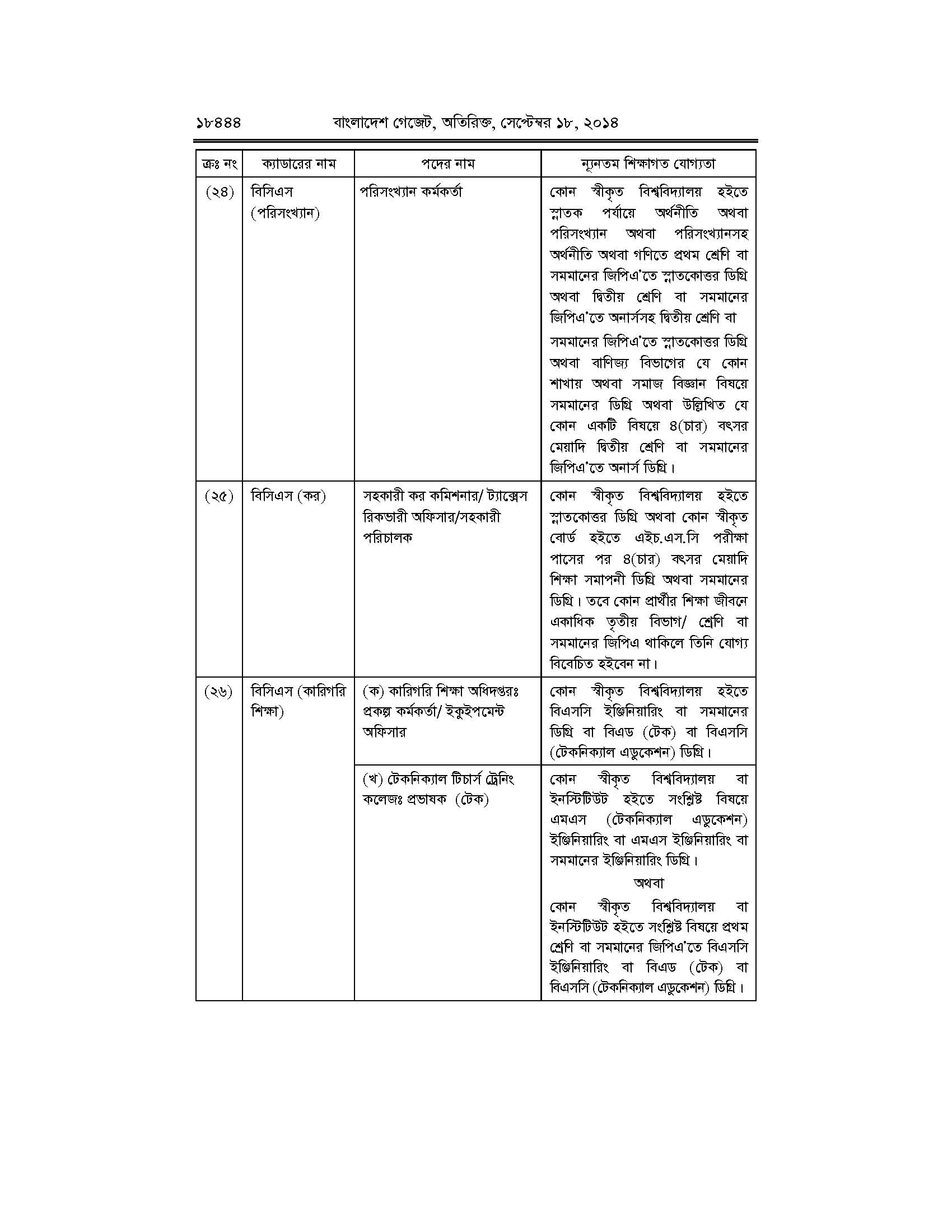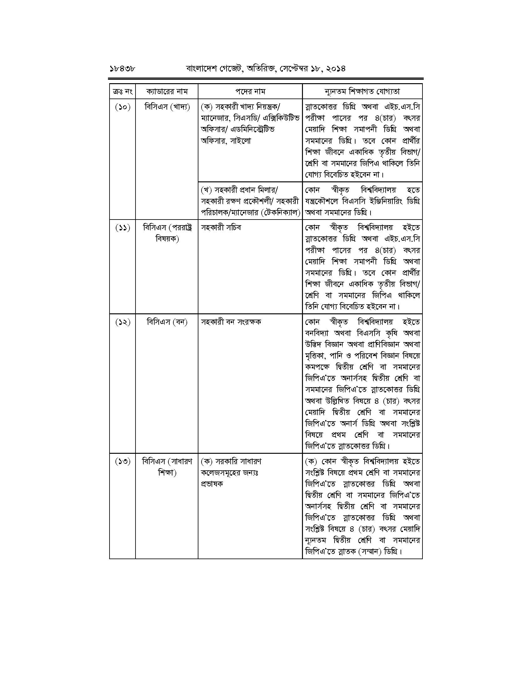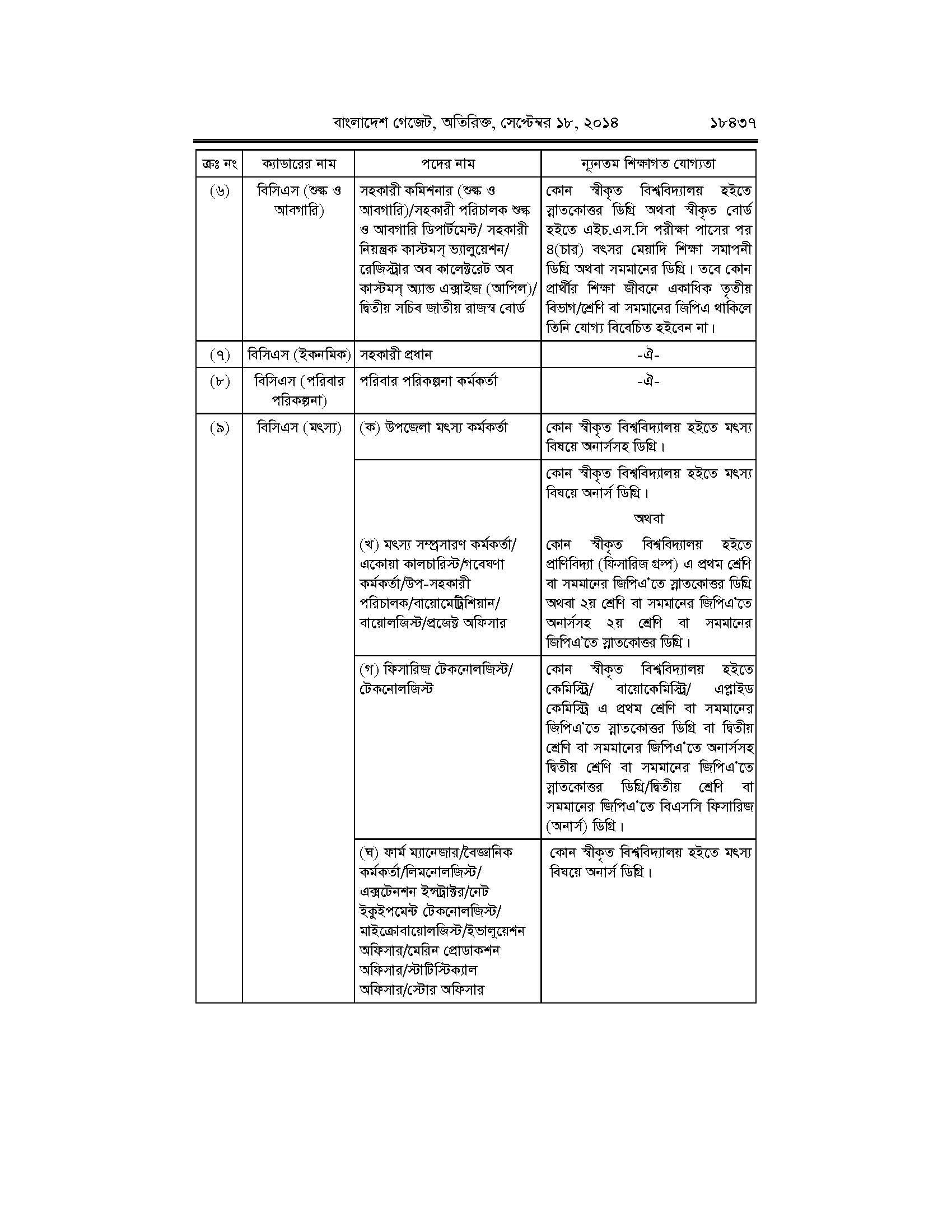 (ণ) বাংলাদেশ সিভিল সার্ভিস (কারিগরি শিক্ষা);
