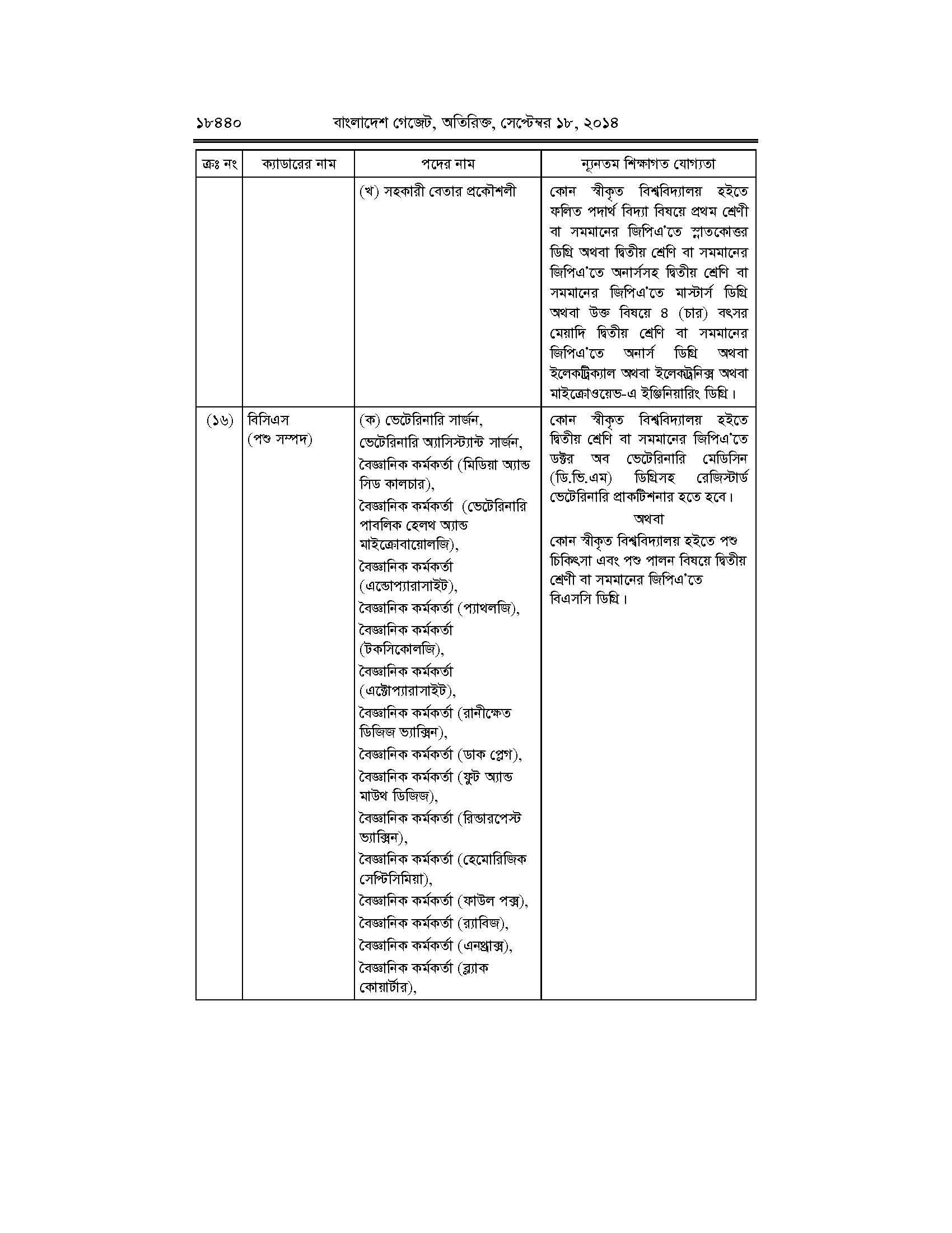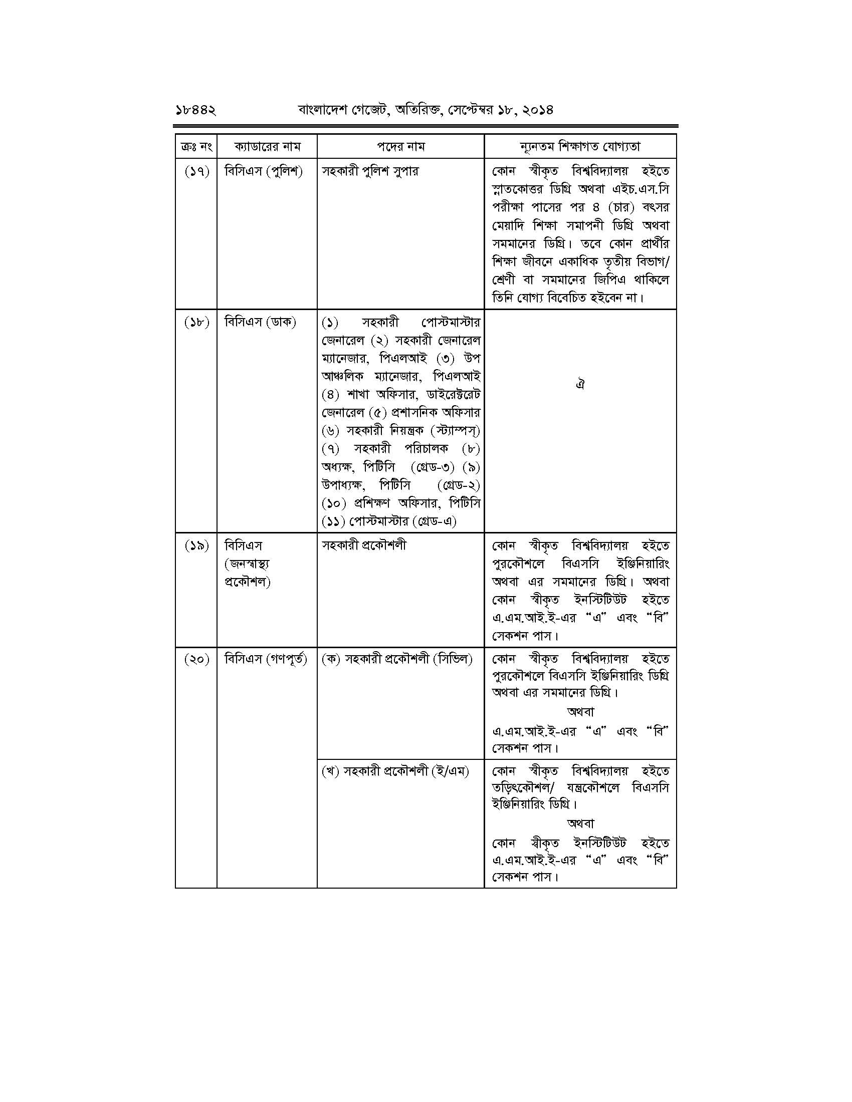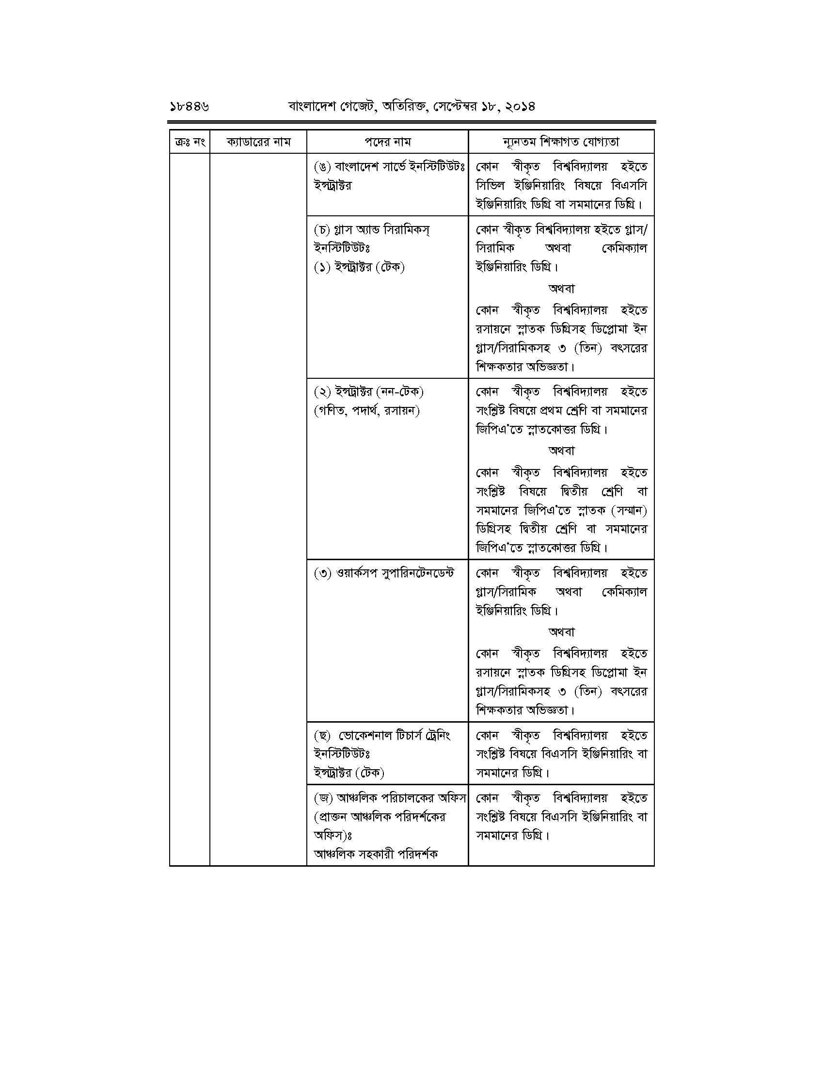 (ণ) বাংলাদেশ সিভিল সার্ভিস (কারিগরি শিক্ষা);