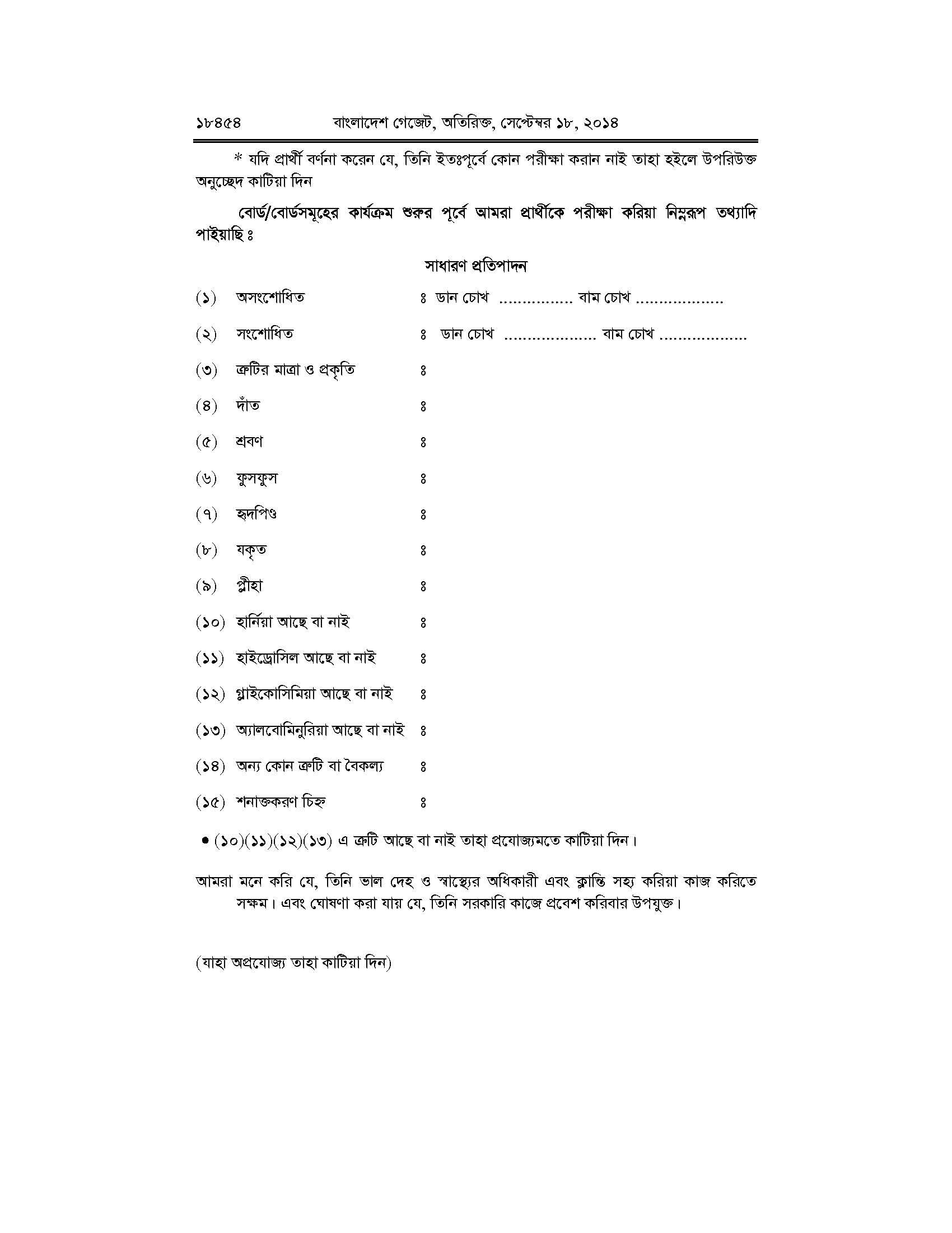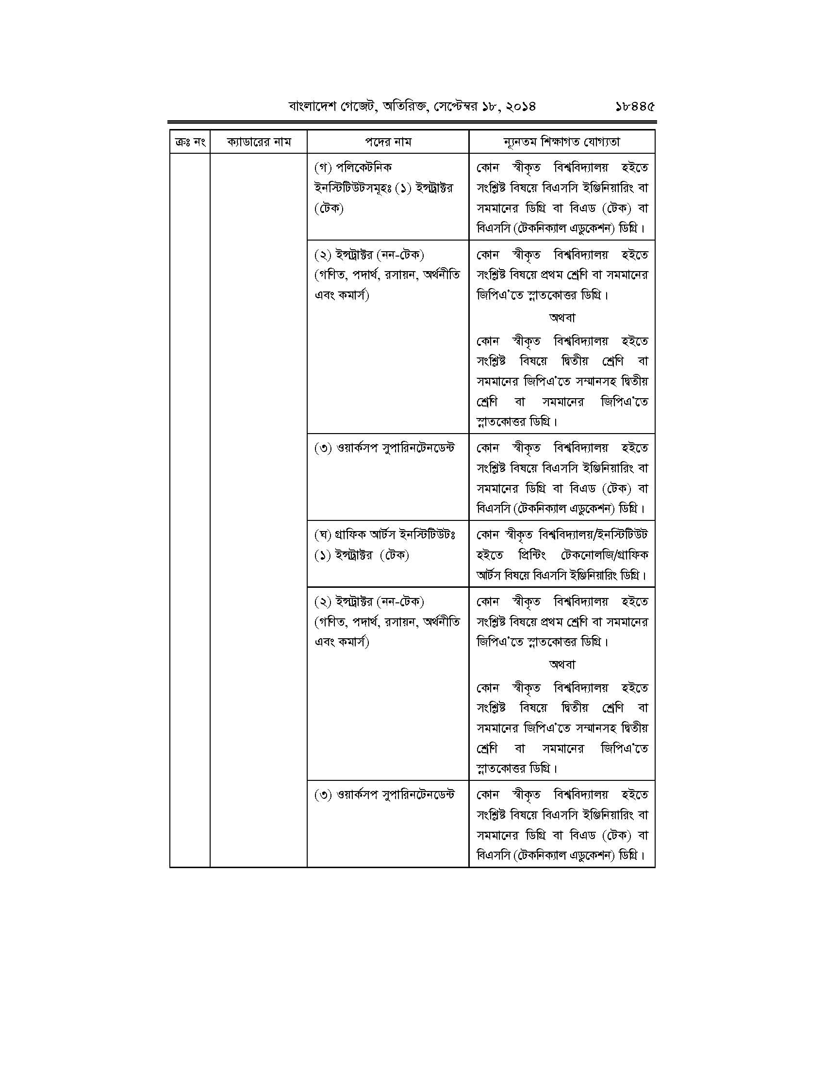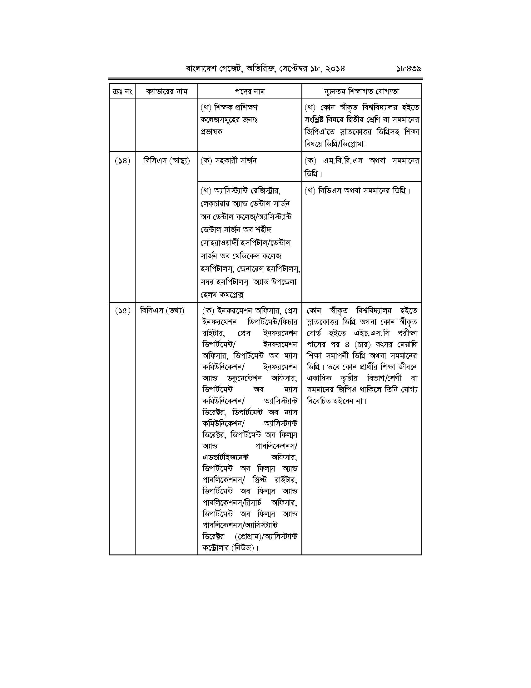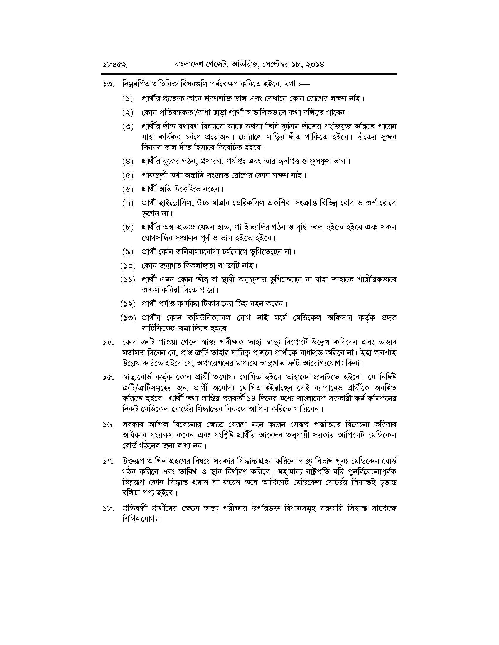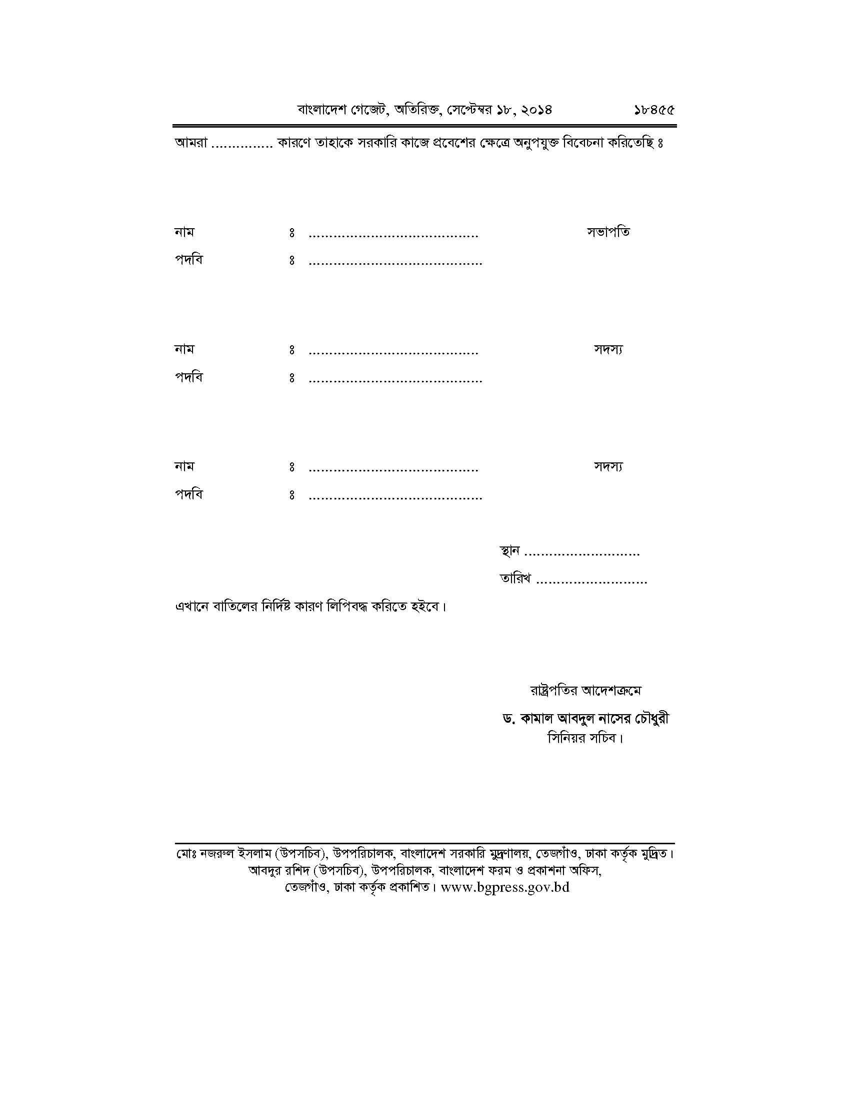 বাংলাদেশ গেজেট, অতিরিক্ত, সেপ্টেম্বর ১৮, ২০১৪