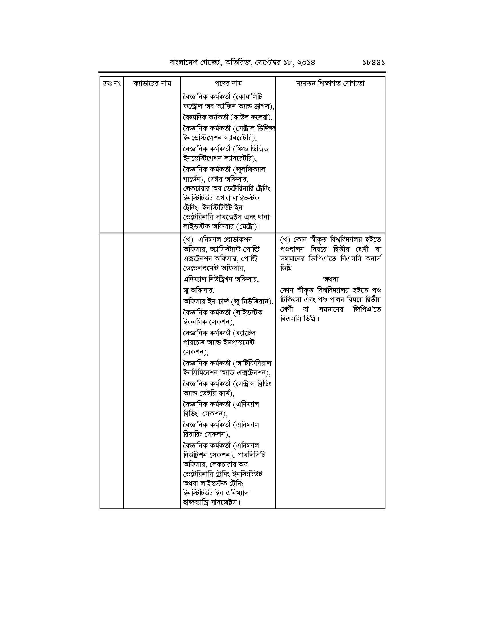 (ঝ) বাংলাদেশ সিভিল সার্ভিস (পশুসম্পদ);