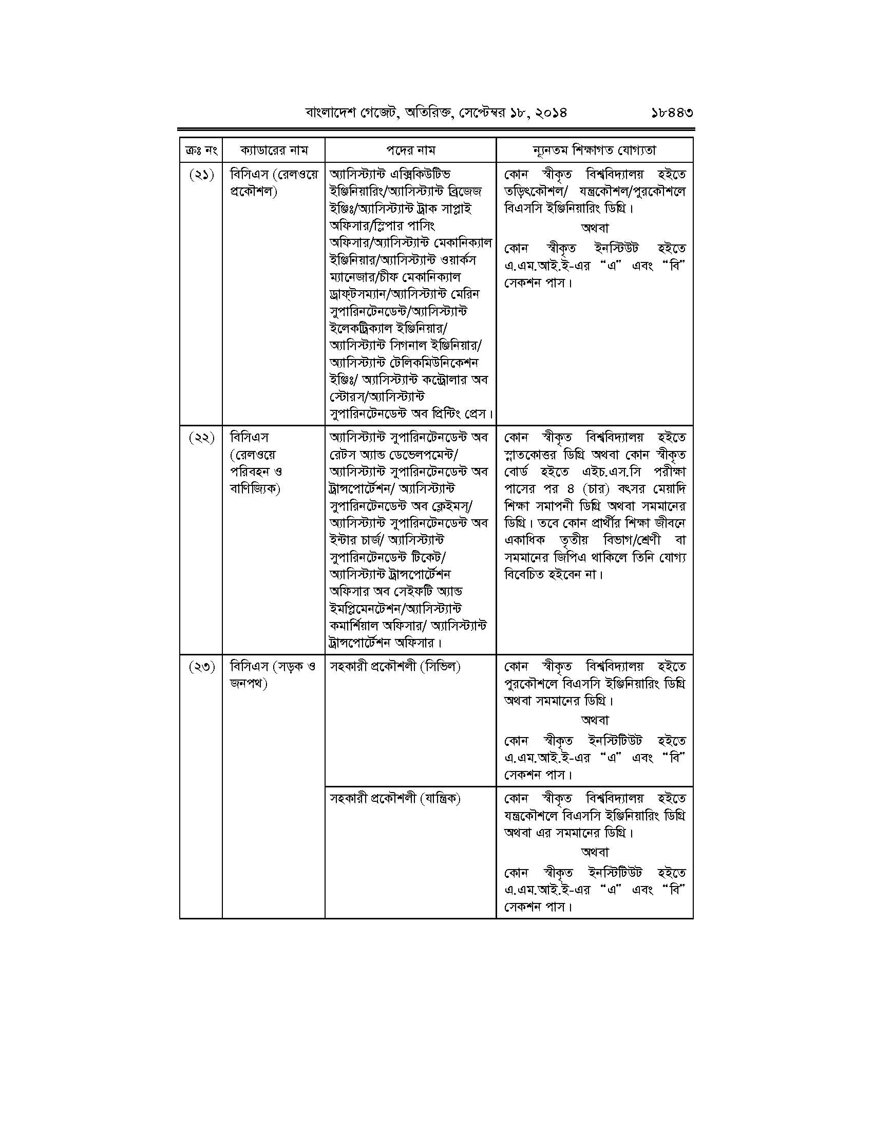 (ঠ) বাংলাদেশ সিভিল সার্ভিস (রেলওয়ে প্রকৌশল);