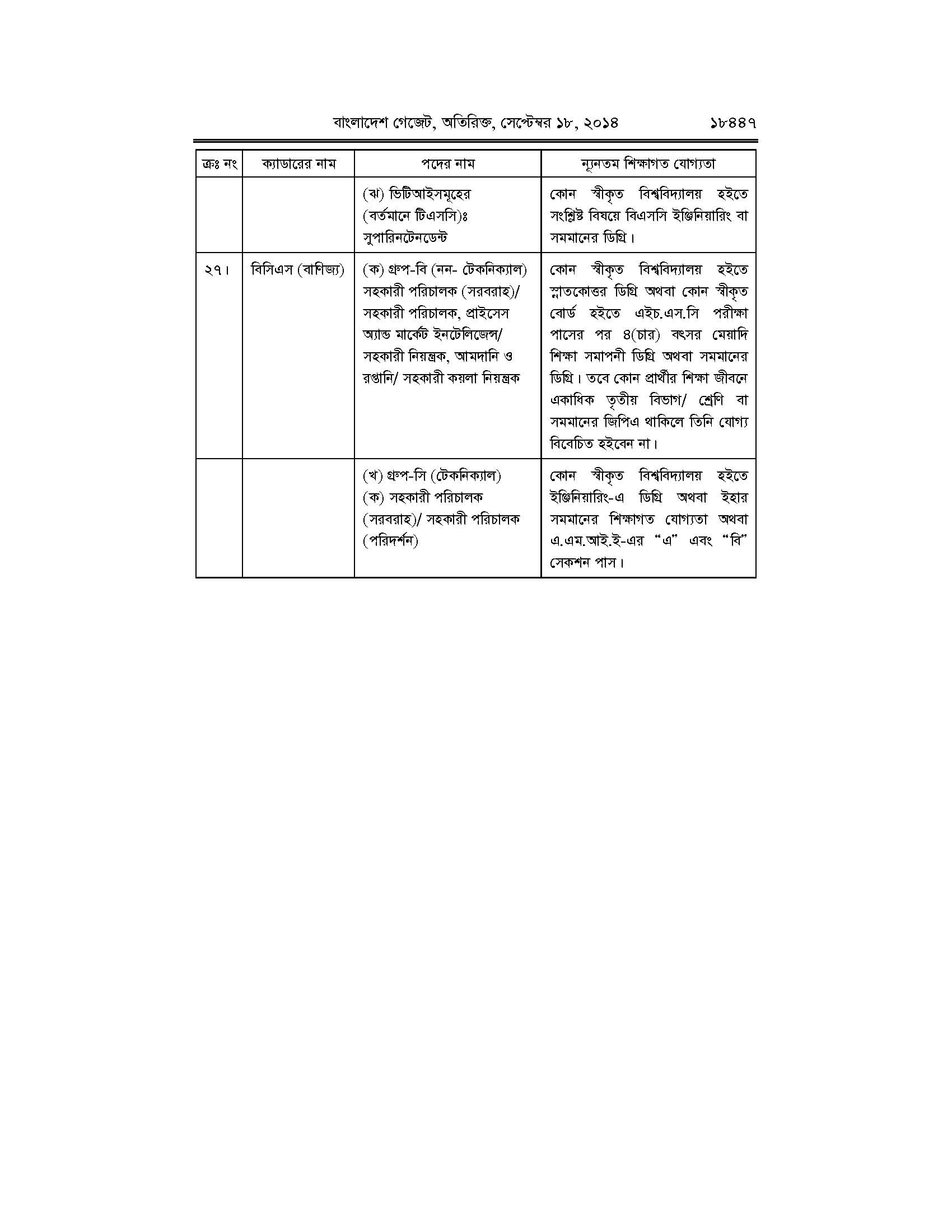 (ত) বাংলাদেশ সিভিল সার্ভিস (বাণিজ্য);