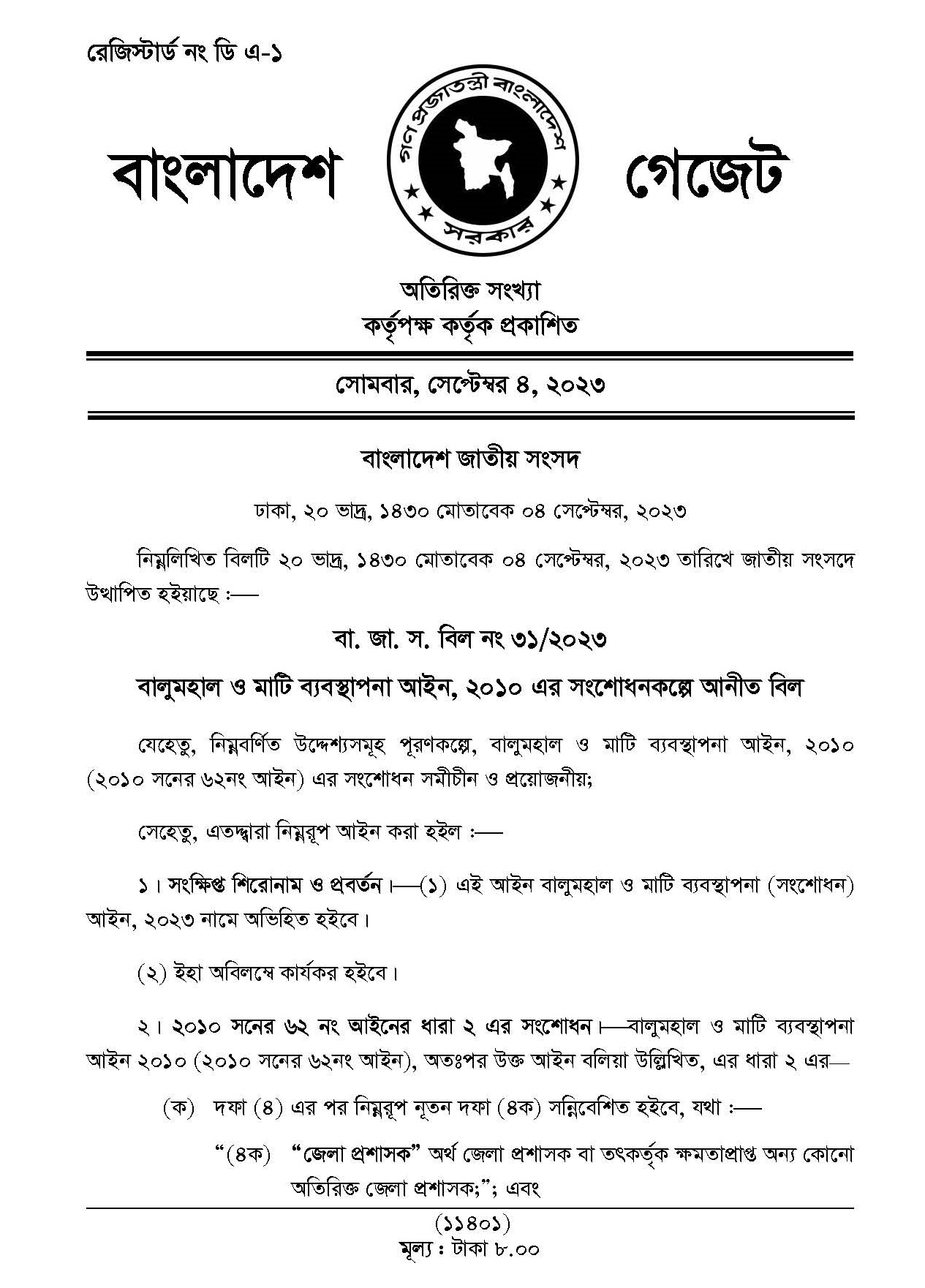 বালুমহাল ও মাটি ব্যবস্থাপনা (সংশোধন) আইন ২০২৩ । নতুন আইন অনুসারে চাইলে বালু উত্তোলন করা যাবে না