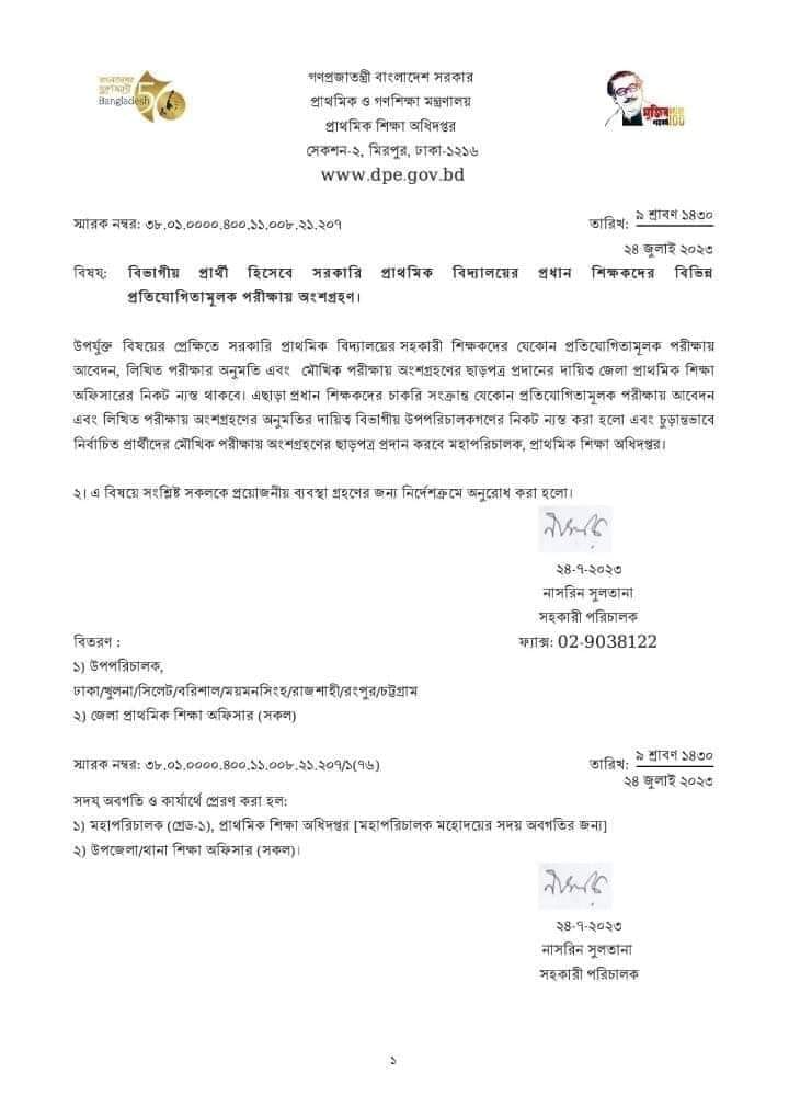 সরকারি চাকরিতে নিজ দপ্তরে বিভাগী প্রার্থী হিসেবে বা অন্য কোন দপ্তরে চাকরির আবেদন, মৌখিক পরীক্ষার অনুমতি কর্তৃপক্ষ নির্ধারণ করে দিল প্রাথমিক শিক্ষা অধিদপ্তর