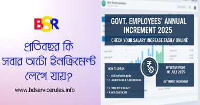 বেতন সংরক্ষণ (Pay Protection): বিএসআর বিধি অনুযায়ী, যদি নতুন পদের শুরুর বেতন আপনার বর্তমান আহরিত বেতনের চেয়ে কম হয়, তবে আপনার বর্তমান বেতনটি নতুন পদেও বহাল রাখা হয় (একে ‘পে প্রটেকশন’ বলে)। তবে শিক্ষা ক্যাডারে যোগদানের সময় বিশেষ ইনক্রিমেন্ট পাওয়ায় যদি আপনার বেতন বর্তমানের চেয়ে বেশি হয়ে যায়, তবে বেতন ফিক্সেশন সেই অনুযায়ী হবে। কিন্তু আপনার সার্ভিস কাউন্ট ঠিকই সংরক্ষিত থাকবে।