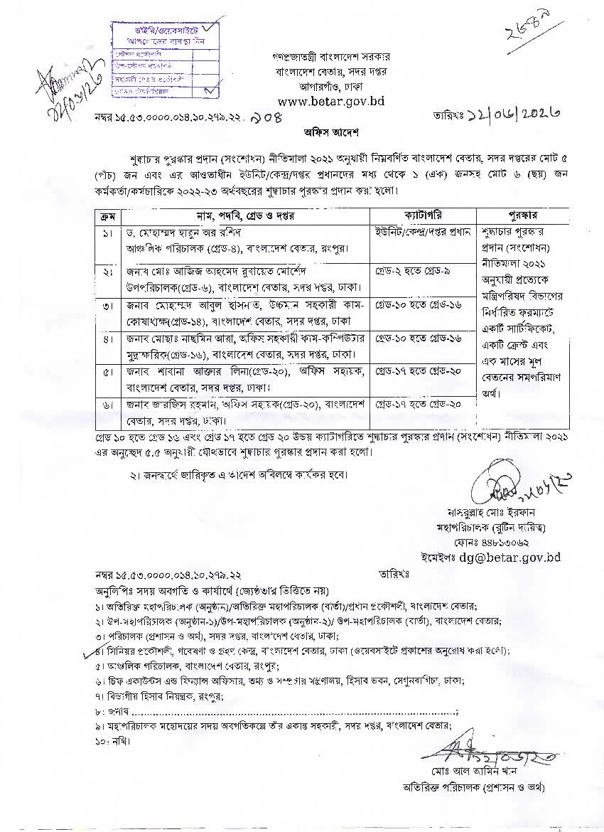 বেতারের ৬ কর্মকর্তা-কর্মচারী পেলেন শুদ্ধাচার পুরস্কার ২০২৩: ডাউনলোড