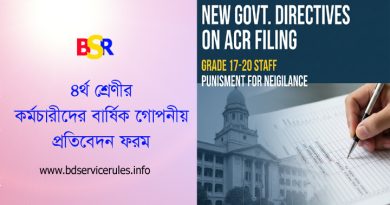 দেশের অভ্যন্তরে বা বিদেশে শিক্ষা ছুটিতে থাকাকালীন গোপনীয় অনুবেদন প্রযোজ্য হইবে না।