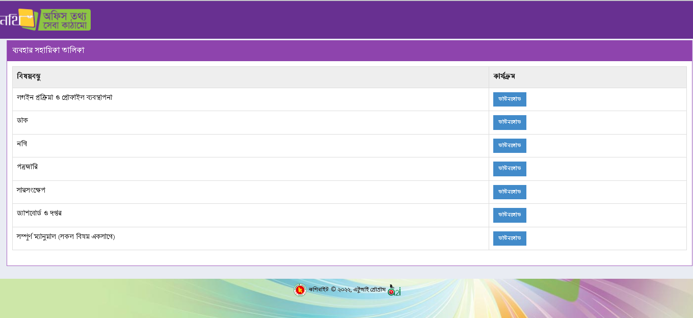 নথি/অফিস ব্যবস্থাপনা । ব্যবহার সহায়িকা তালিকা ২০২২