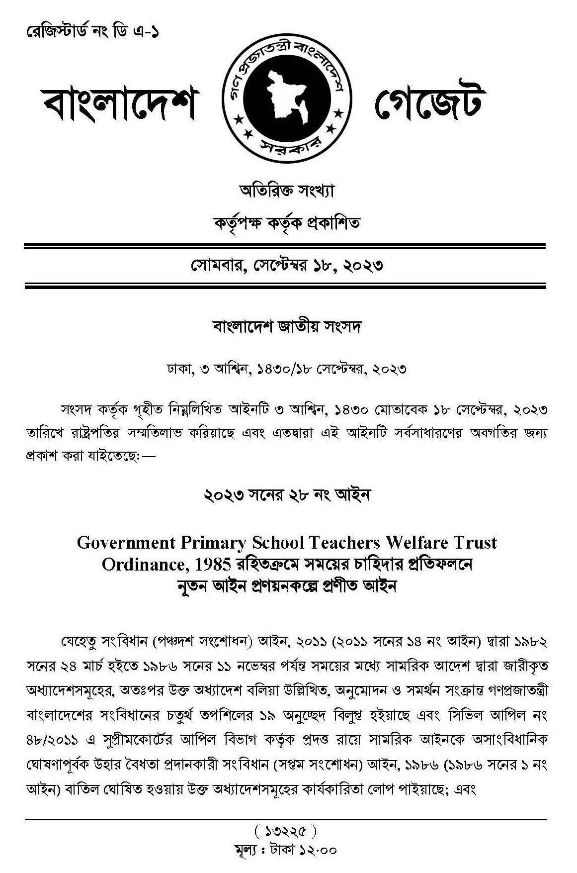 সরকারি প্রাথমিক বিদ্যালয় শিক্ষক কল্যাণ ট্রাস্ট আইন, ২০২৩ পিডিএফ ডাউনলোড