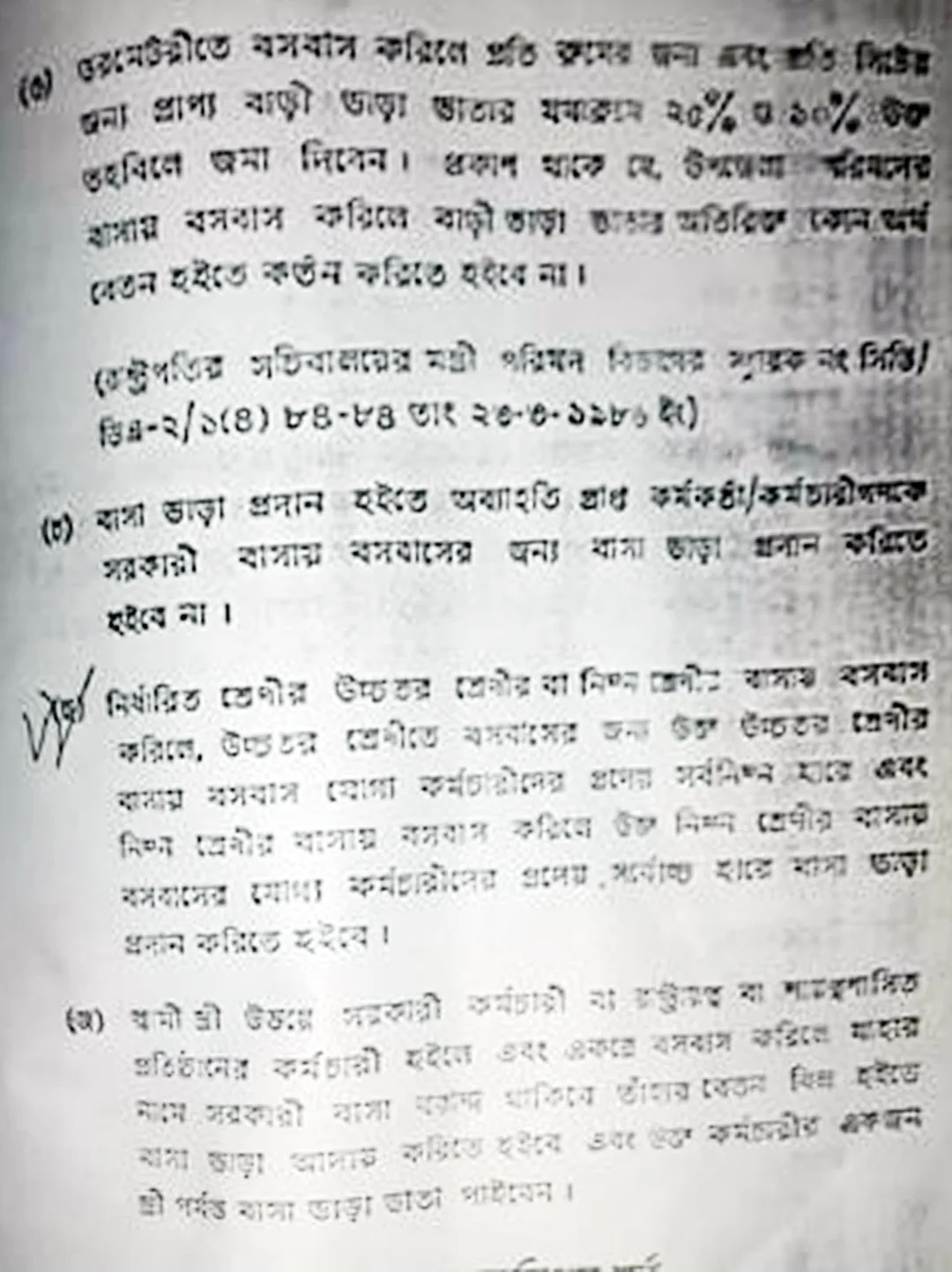 ভাড়া কর্তনের নিয়ম: নিম্নগ্রেডের কর্মচারী যখন উচ্চ গ্রেডের বাসায় থাকবেন, তখন তাকে ওই উচ্চতর শ্রেণির বাসায় বসবাসযোগ্য কর্মচারীদের জন্য নির্ধারিত সর্বনিম্ন হারে বাসা ভাড়া প্রদান করতে হবে।