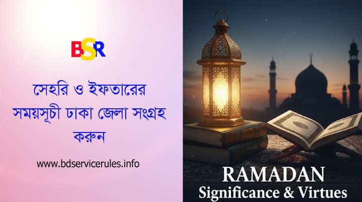 প্রকাশিত সূচি অনুযায়ী, ঢাকা জেলার জন্য ১৯ ফেব্রুয়ারি প্রথম রমজানের সাহরীর শেষ সময় নির্ধারণ করা হয়েছে ভোর ৫টা ১২ মিনিট এবং ইফতারের সময় রাখা হয়েছে সন্ধ্যা ৫টা ৫৮ মিনিট। মাসব্যাপী এই সিয়াম সাধনার শেষ দিন অর্থাৎ ৩০তম রমজানের সম্ভাব্য তারিখ ২০ মার্চ, যেখানে সাহরীর শেষ সময় ৪টা ৪৭ মিনিট এবং ইফতারের সময় সন্ধ্যা ৬টা ১১ মিনিট।