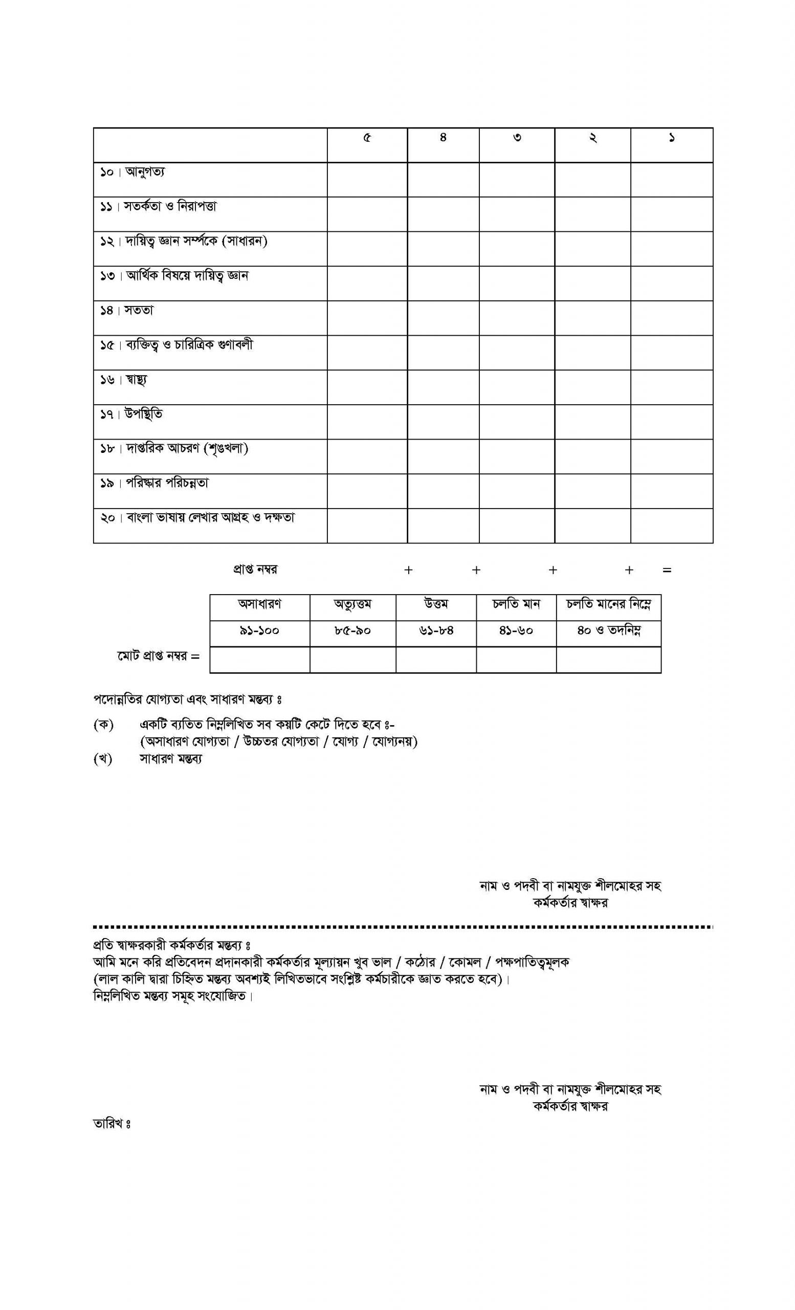 স্টাফ এসিআর ফরম – ৩য় শ্রেণীর কর্মচারীদের এসিআর ফরম – Staff ACR Form
