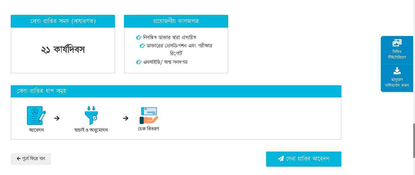 সংশ্লিষ্ট রোগের বিশেষজ্ঞ চিকিৎসকের প্রত্যয়নপত্র ও প্রয়োজনীয় টেস্ট রিপোর্ট থাকতে হবে।
