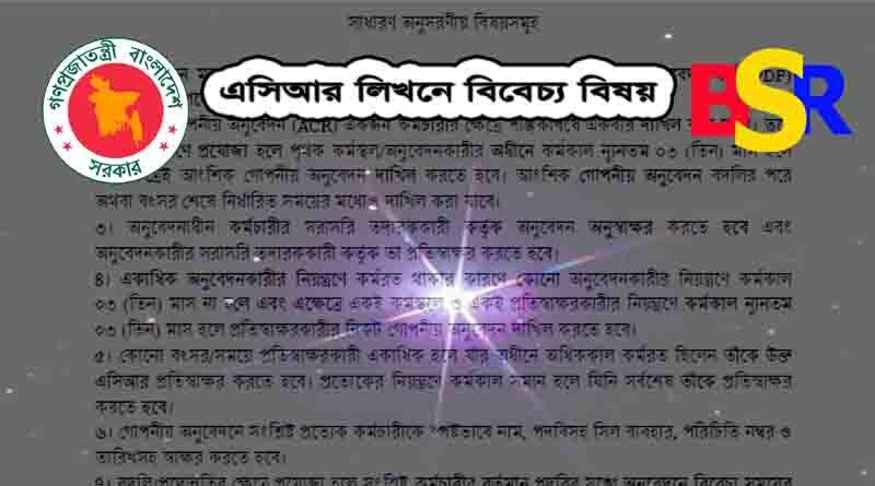 গোপনীয় অনুবেদন ফর্ম লিখনে সাধারণ অনুসরণীয় বিষয়সমূহ।