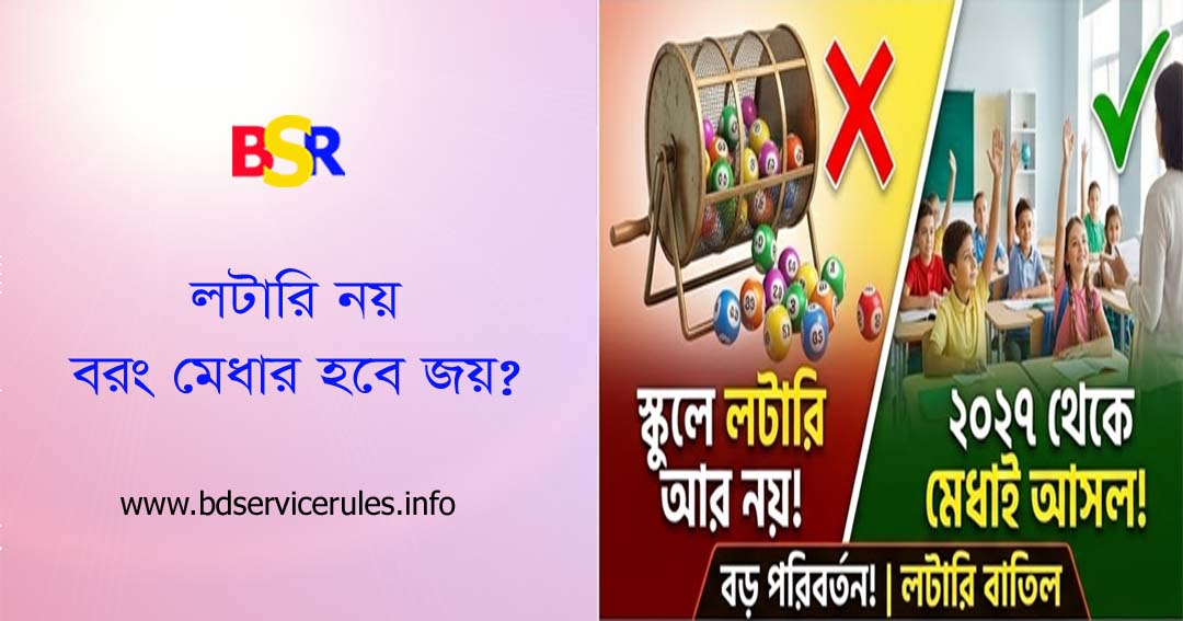 দেশের সরকারি ও বেসরকারি মাধ্যমিক বিদ্যালয়গুলোতে দীর্ঘ কয়েক বছর ধরে চলে আসা ‘লটারি’ পদ্ধতির অবসান…
