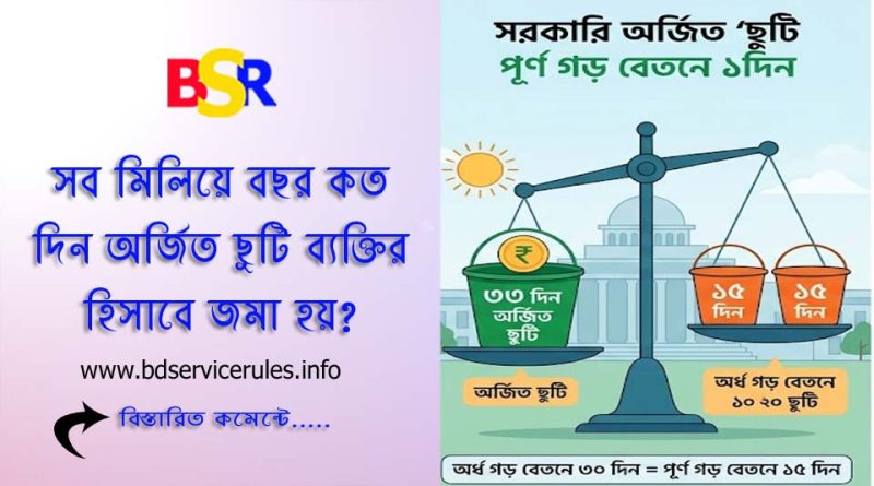 সরকারি কর্মচারীদের অর্জিত ছুটি হিসাবের নিয়ম ২০২৬ । প্রতি বছর কত দিন অর্জিত ছুটি জমা হয়?
