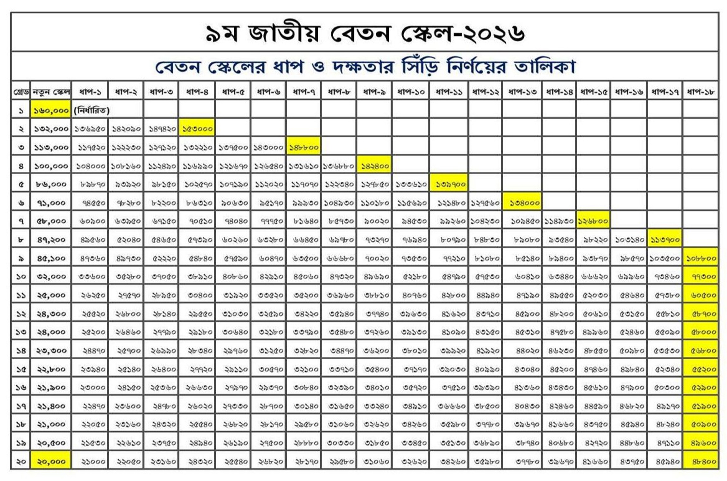 ৩. নিম্ন গ্রেডে বিশেষ নজর: ১১ থেকে ২০তম গ্রেডের কর্মচারীদের জীবনযাত্রার মানোন্নয়নে এই ধাপে সবচেয়ে বেশি শতাংশ হারে বেতন বাড়ানো হয়েছে।