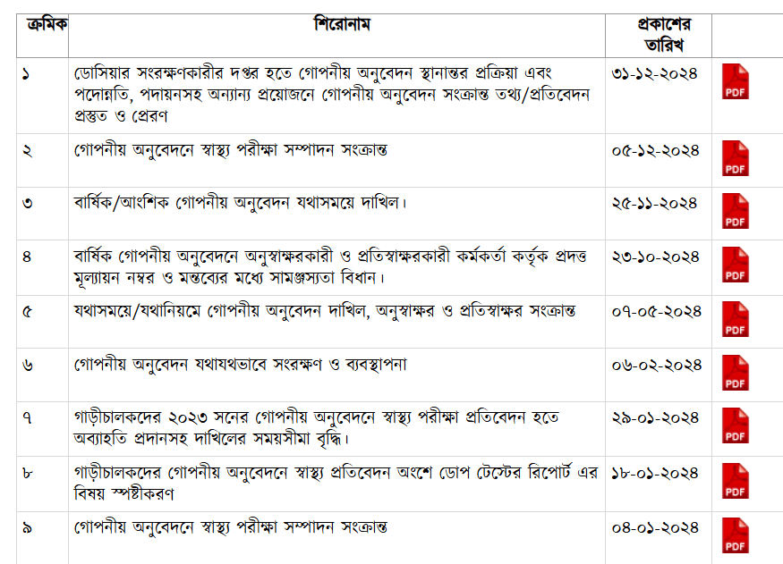 বিষয়: গোপনীয় অনুবেদন সিআর অধিশাখা/ডােসিয়ার সংরক্ষণকারীর নিকট যথাসময়ে প্রেরণ।