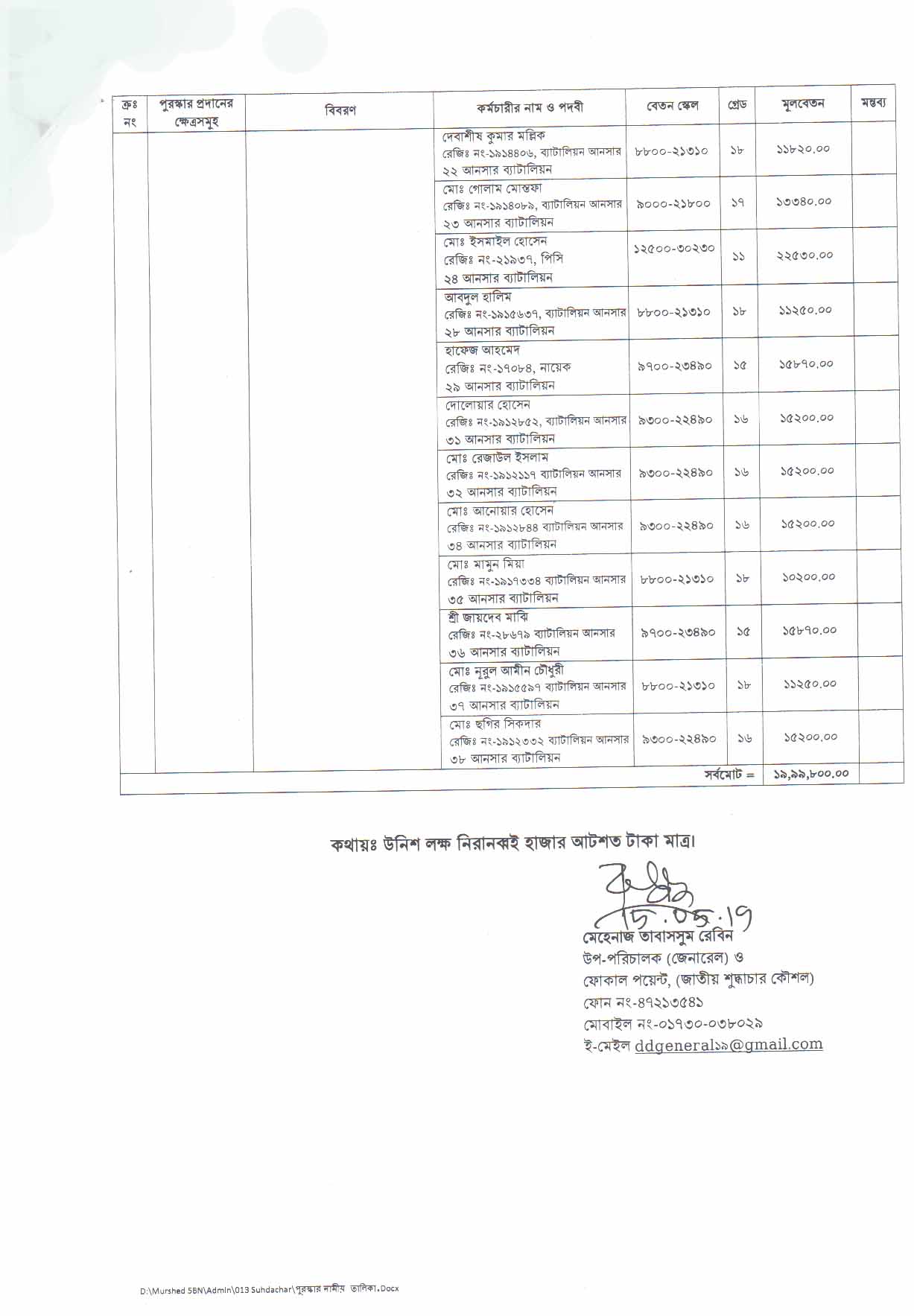ক) উপরের ছকের ৪নং কলামে নির্ধারিত বেতনগ্রেড ৫নং কলামে প্রদর্শিত যােগ্যতা/অভিজ্ঞতা অনুযায়ী কার্যকর হবে;