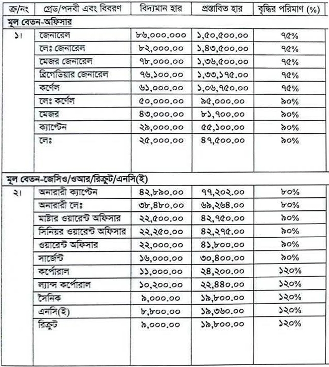 সশস্ত্র বাহিনীর প্রস্তাব বেতন কাঠামো ২০২৫