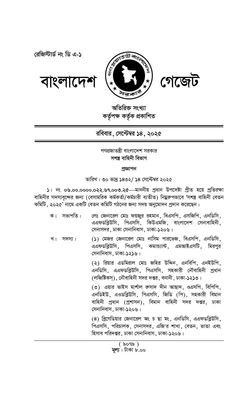 নতুন ‘সশস্ত্র বাহিনী বেতন কমিটি, ২০২৫’-এর সদস্যদের তালিকা । কমিটিতে কে কে আছেন?