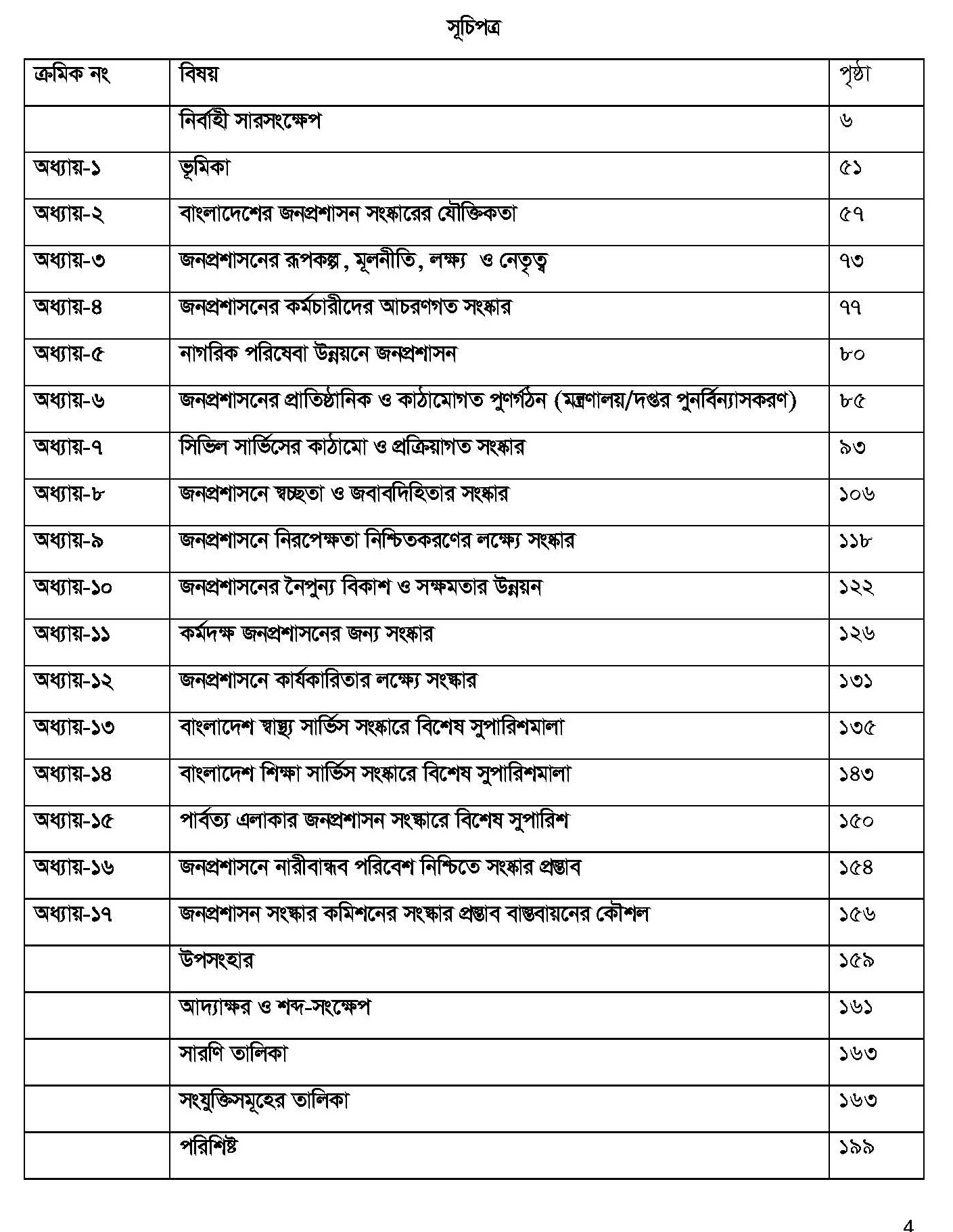 জনপ্রশাসন সংস্কার কমিশন কাজ শুরুর করার পর থেকে প্রায় ৪৯টি সভায় মিলিত হয়ে কমিশনের প্রতিবেদন ও সুপারিশ প্রণয়ন করে- কমিশনের প্রতিবেদনকে মোট ১৭টি অধ্যায়ে বিন্যস্ত করা হয়েছে –সংস্কার কমিশন রিপোর্ট ২০২৫
