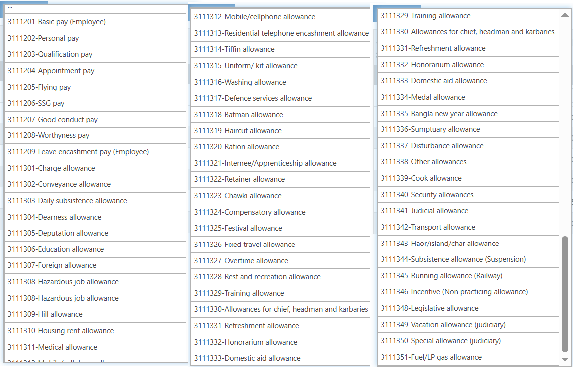 | Chawki allowance | Defence services allowance | Daily subsistence allowance |
