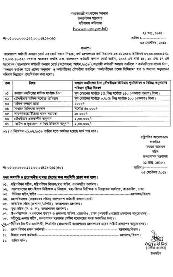 | ২ | যৌথ বীমার এককালীন অনুদান | বাংলাদেশ কর্মচারী কল্যাণ বোর্ড (বিকেকেবি) | ২,০০,০০০/- (দুই লক্ষ টাকা) | ১৯/০৮/২০২৫ তারিখ বা এর পরবর্তী মৃত্যু হলে ৩,০০,০০০/- টাকা |
