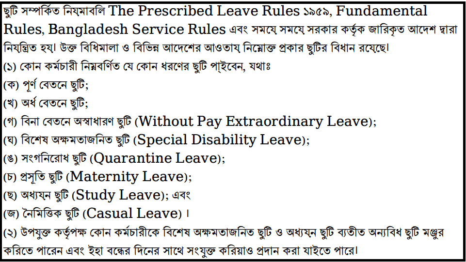 - বিশেষ ক্ষেত্রে নৈমিত্তিক ছুটি সবোর্চ্চ ১০ দিন নেয়া যেতে পারে।
