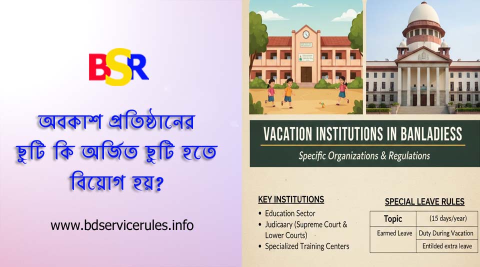 বাংলাদেশে সরকারি বিধিমালা (বিশেষ করে ‘BSR’ বা বাংলাদেশ সার্ভিস রুলস) অনুযায়ী, যে সকল প্রতিষ্ঠানে নিয়মিত…